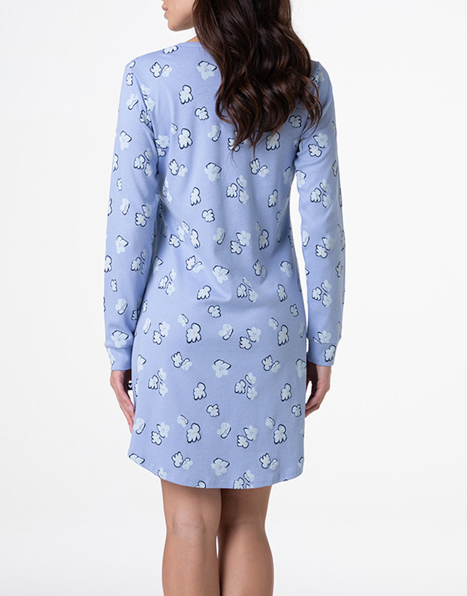 Camicia da Notte Serafino Manica Lunga in Interlock, azzurro polvere stampato