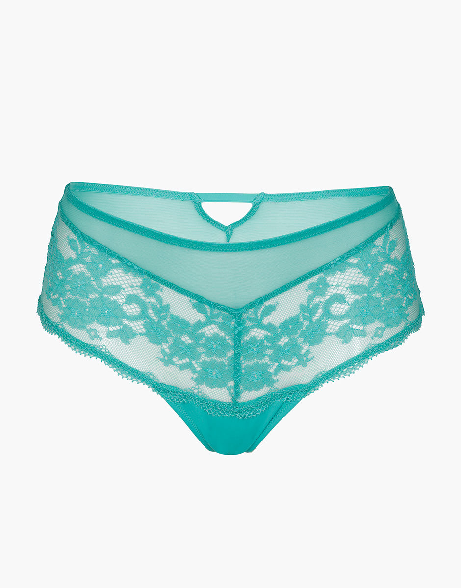 Culotte brasiliana Flower Dreams in tulle, pizzo e microfibra, menta