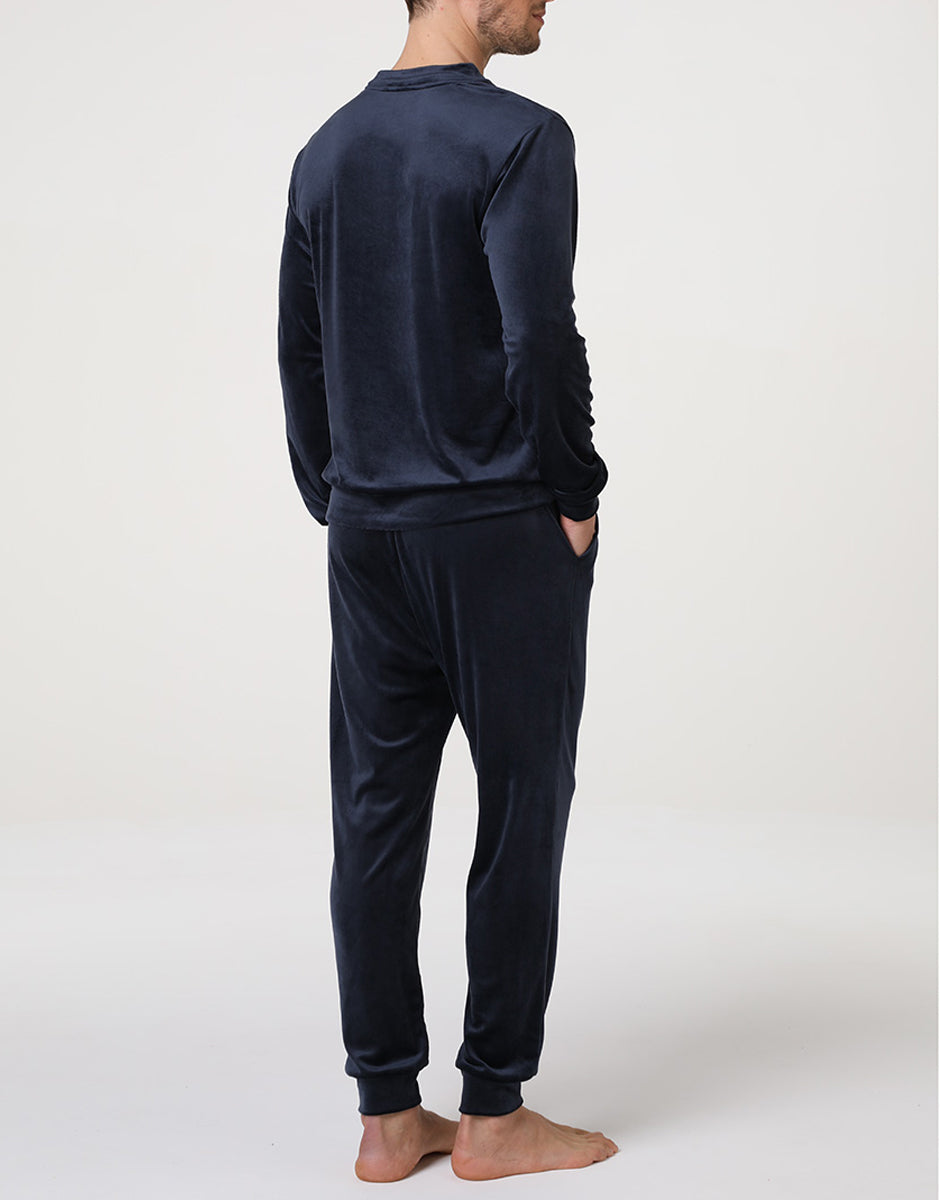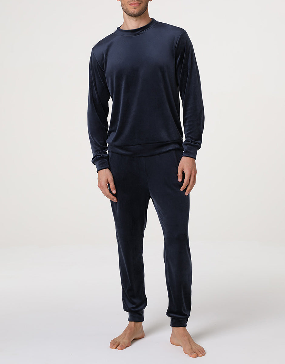 Scopri il comfort morbido e avvolgente del nostro homewear in ciniglia da uomo, nel raffinato colore blu notte. Il tessuto in ciniglia garantisce una sensazione calda e vellutata sulla pelle, perfetta per le giornate di relax e riposo in casa.