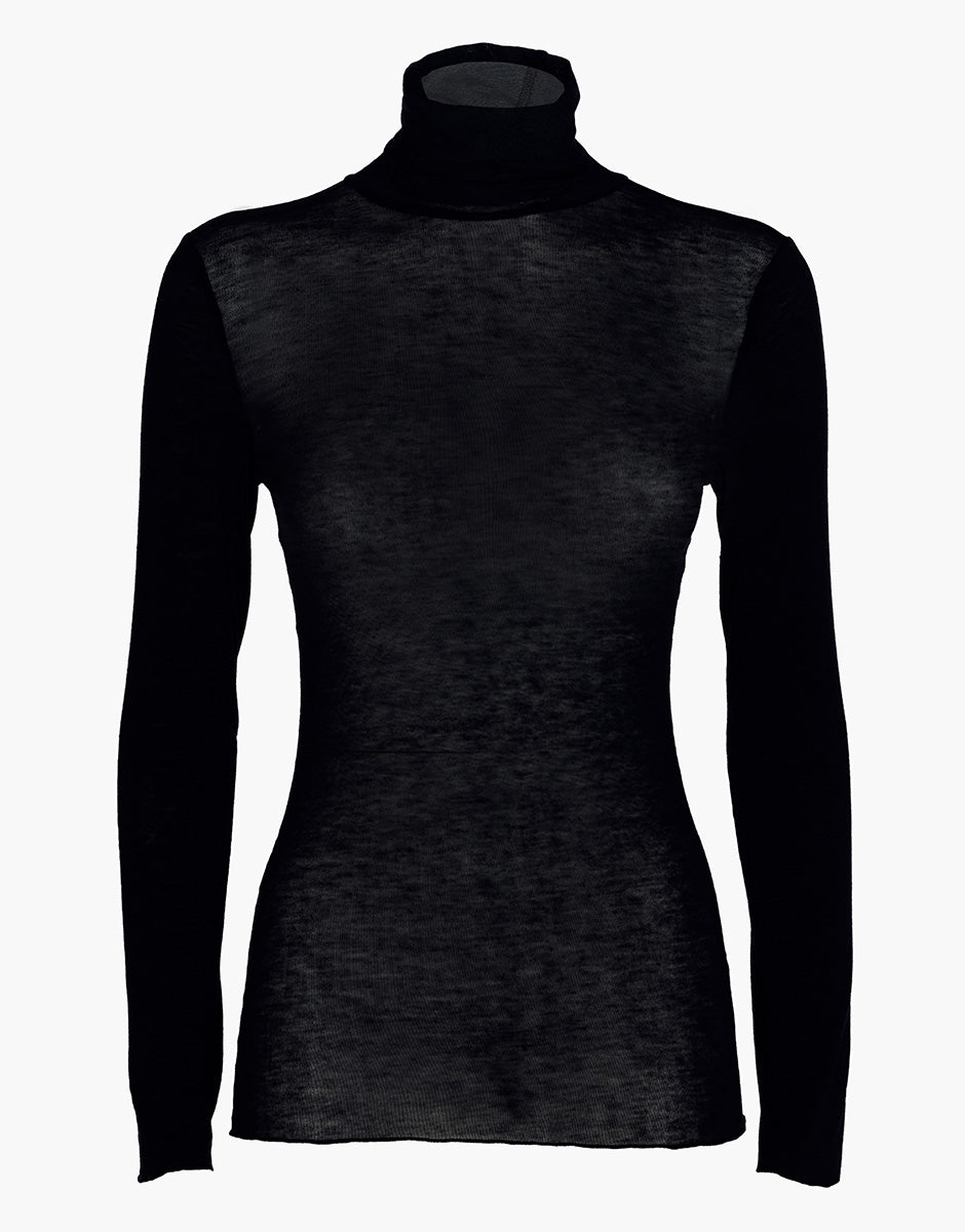 Scopri la maglia manica lunga collo alto Ultralight and Warm nel classico colore nero, un must-have realizzato con filato pregiato in modal e cashmere. Questa maglia a tinta unita offre calore e morbidezza senza rinunciare alla leggerezza.