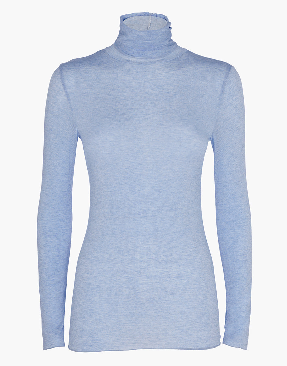 Porta un tocco di freschezza e delicatezza al tuo guardaroba con la maglia manica lunga collo alto Ultralight and Warm nel tenue colore ortensia. Realizzata in filato pregiato di modal e cashmere, questa maglia a tinta unita unisce leggerezza, calore e una morbidezza avvolgente.