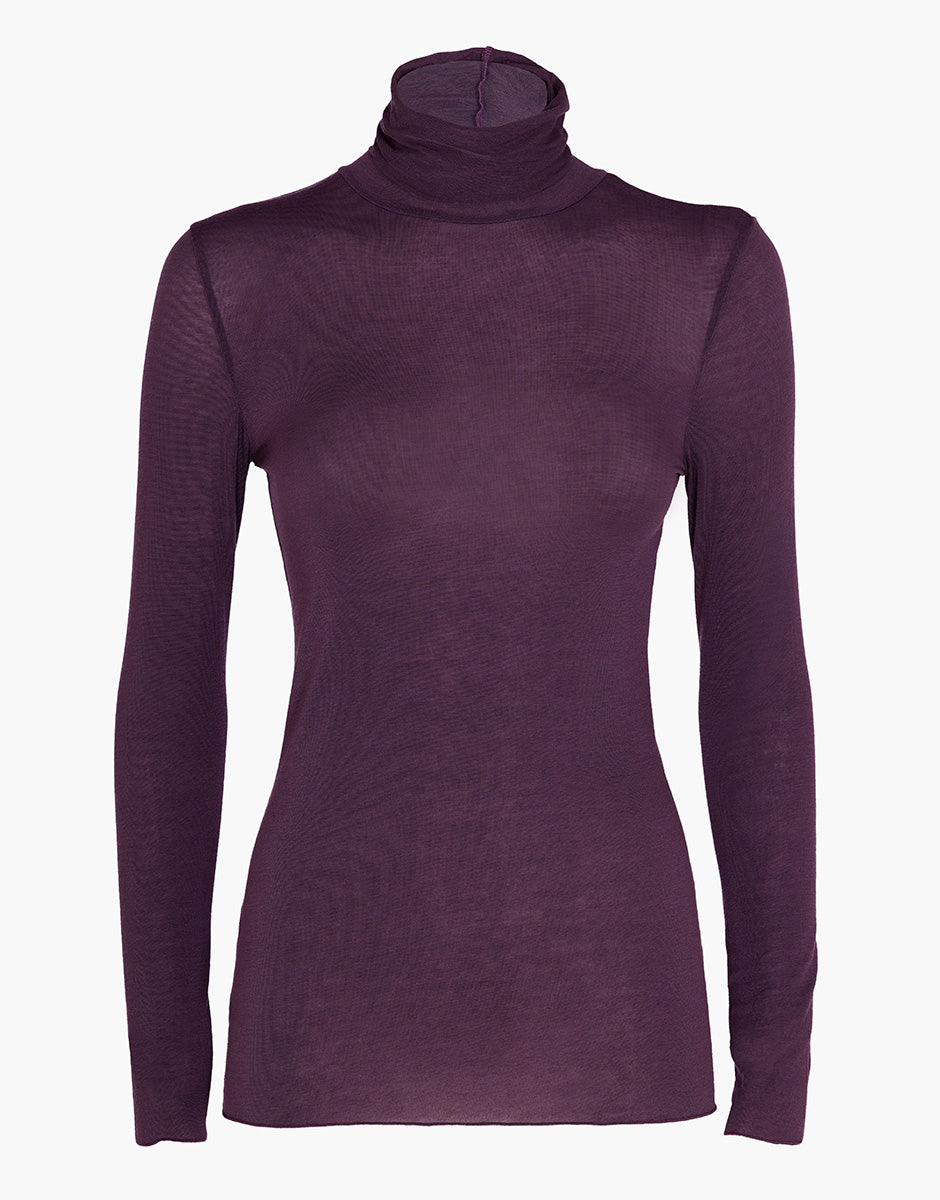 Maglia a collo alto e manica lunga in modal e cashmere, vinaccia