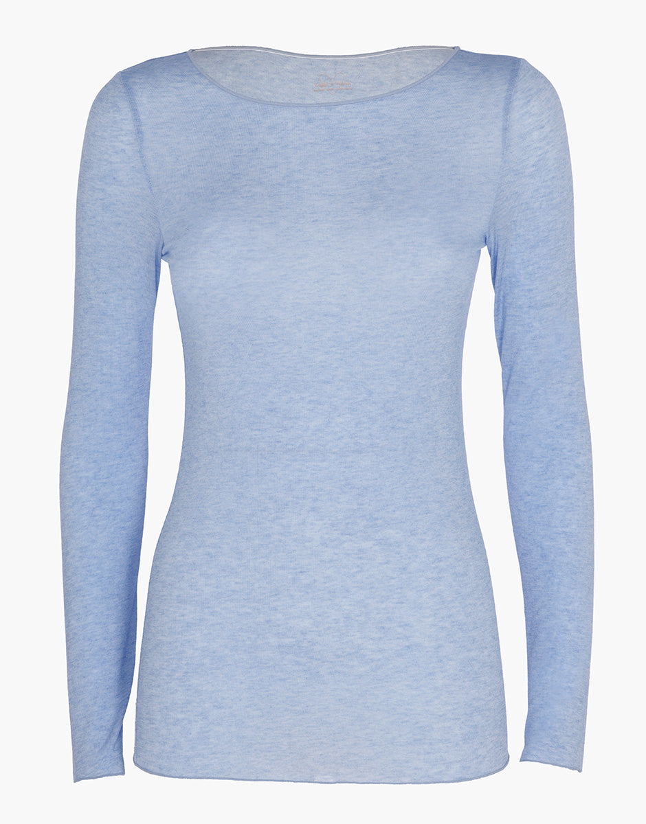 Illumina il tuo guardaroba con la maglia manica lunga con scollo barchetta Ultralight and Warm nel delicato azzurro ortensia, un colore tenue e sofisticato.