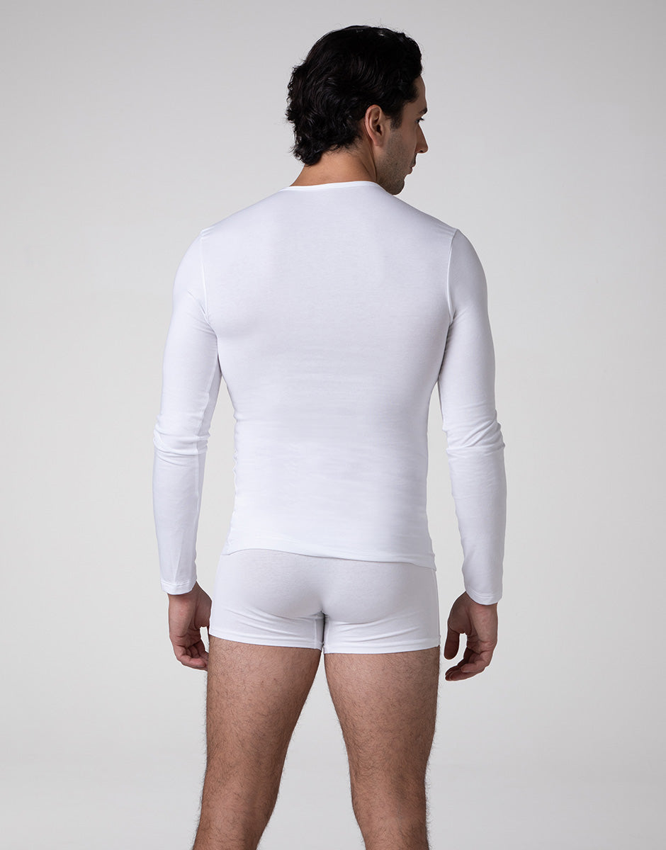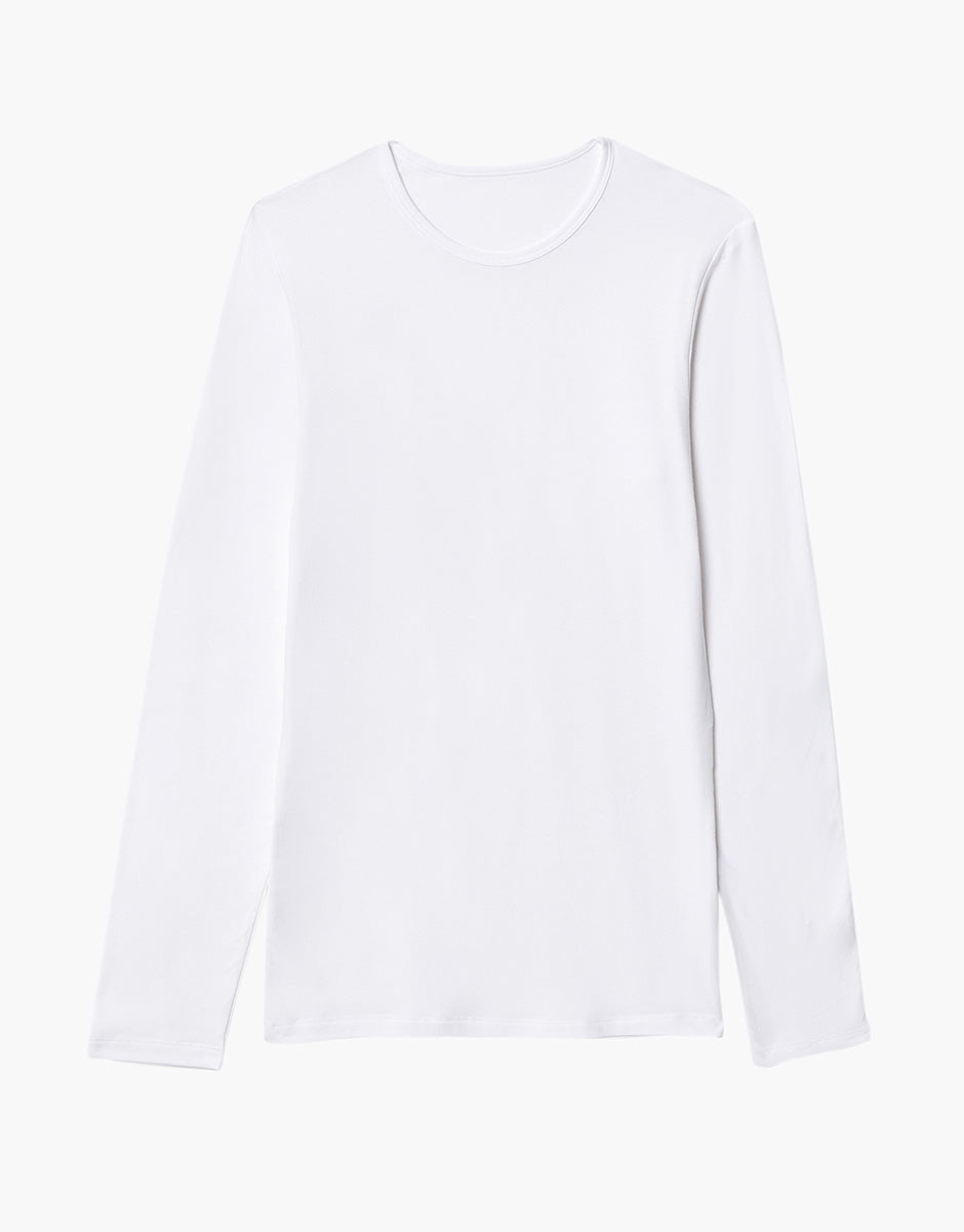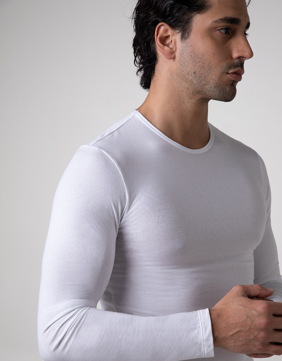 Maglia girocollo manica lunga Warm Sensation in Stretch Cotton, bianco