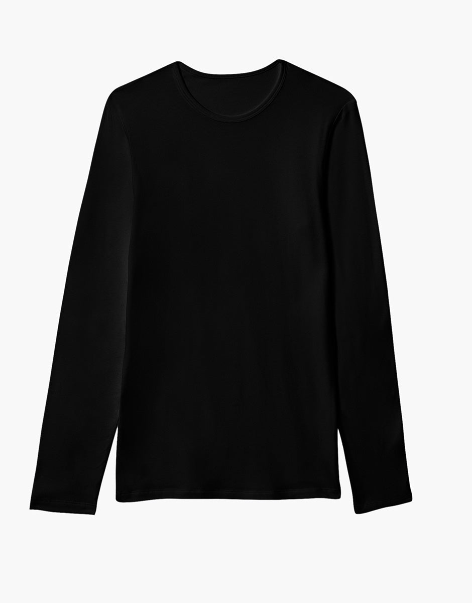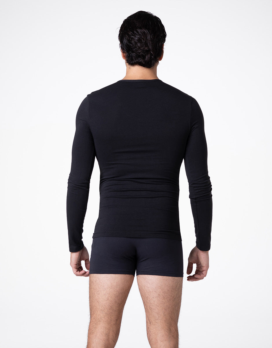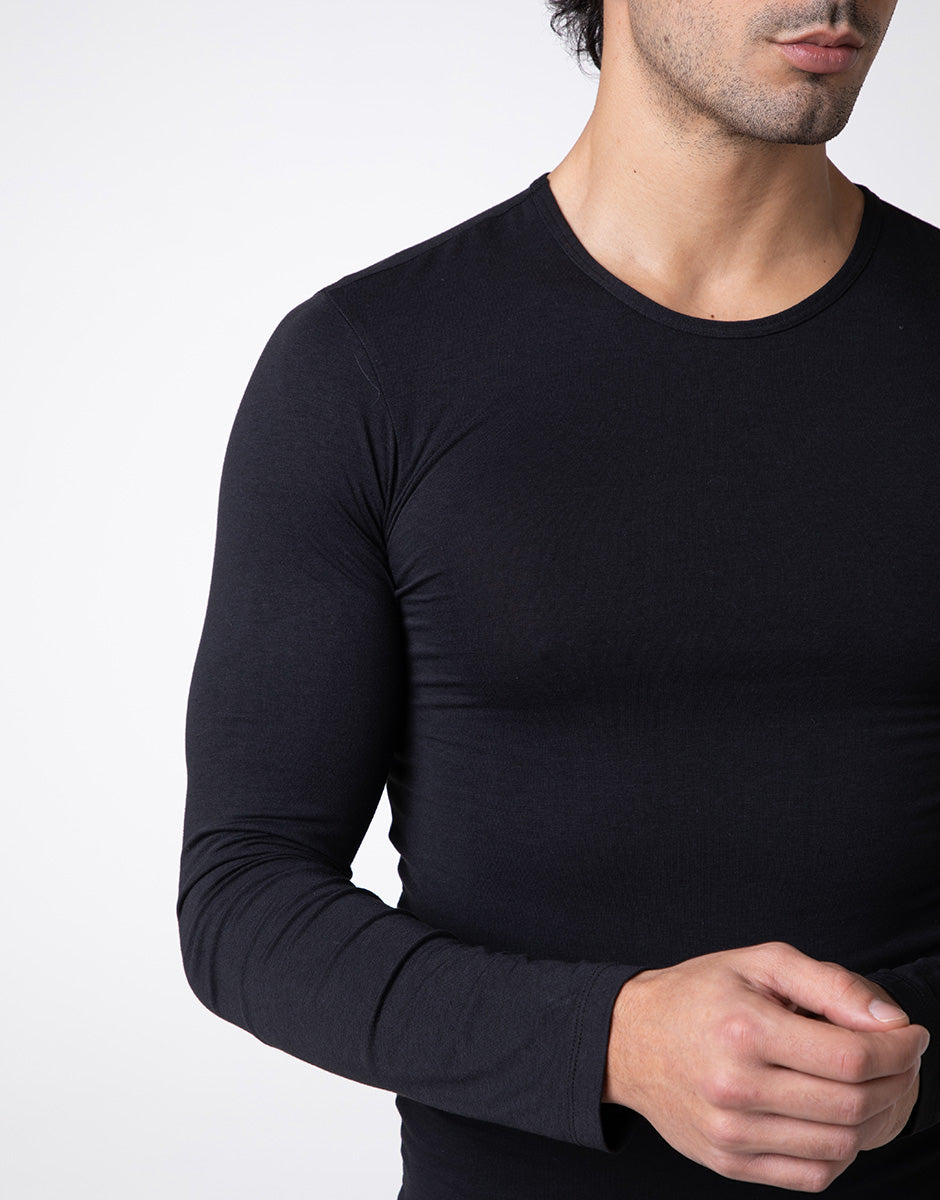 Maglia girocollo manica lunga Warm Sensation in Stretch Cotton, nero