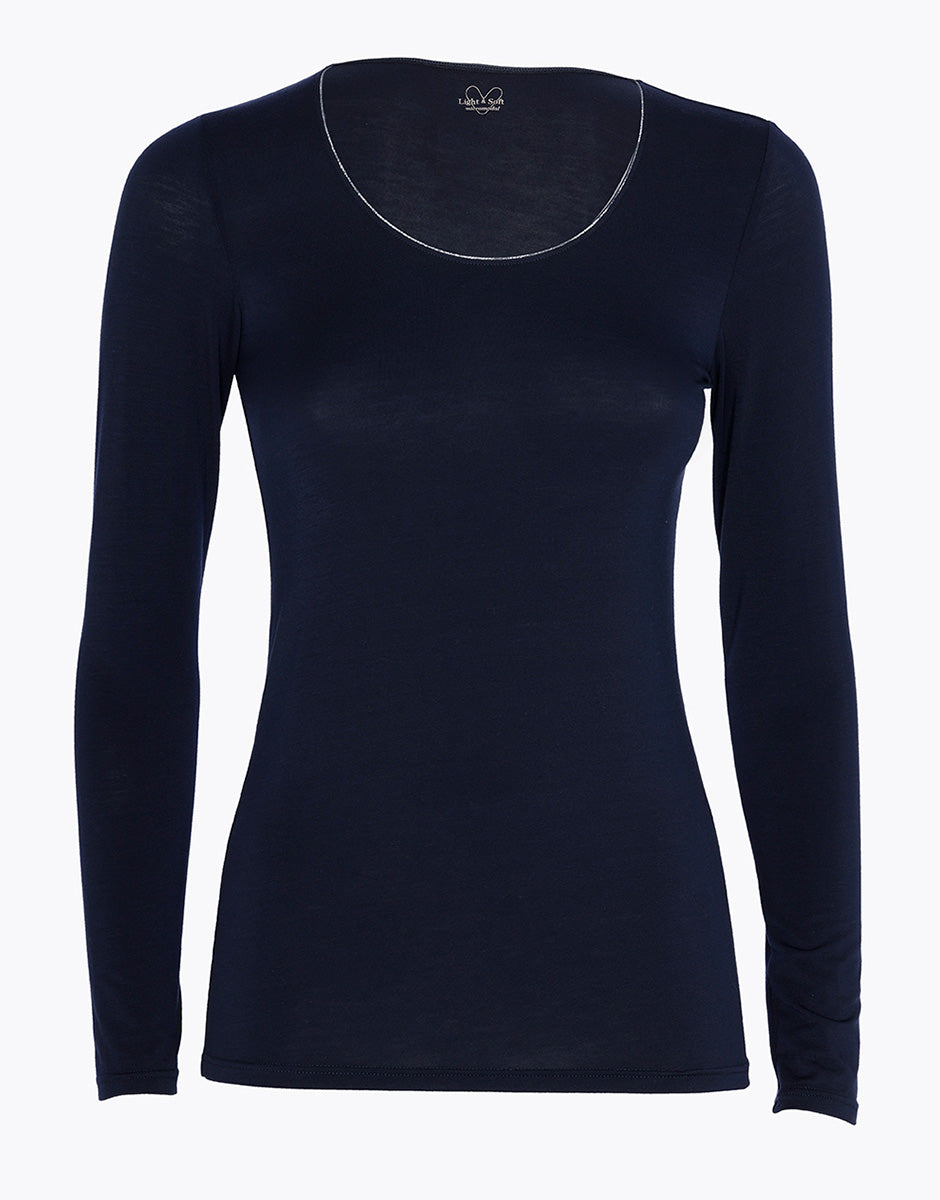 Maglia Manica Lunga Scollo Ampio Micromodal, blu notte