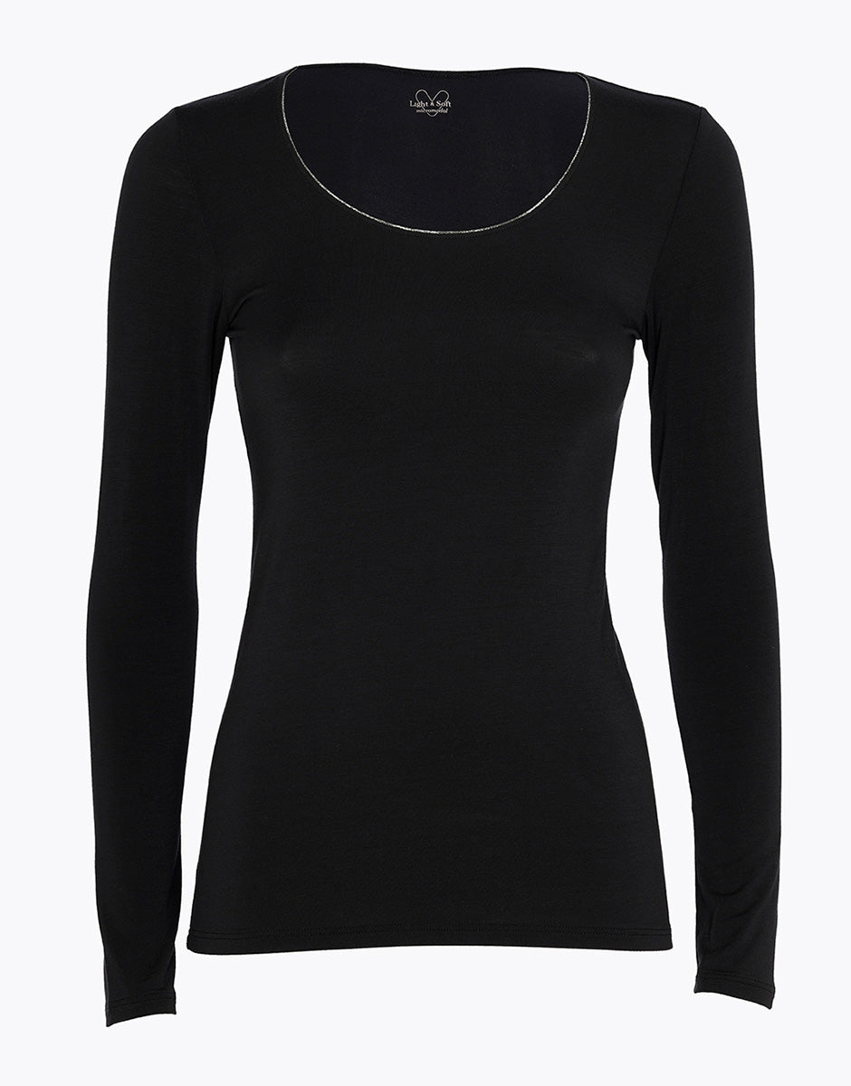 Maglia Manica Lunga Scollo Ampio Micromodal, nero