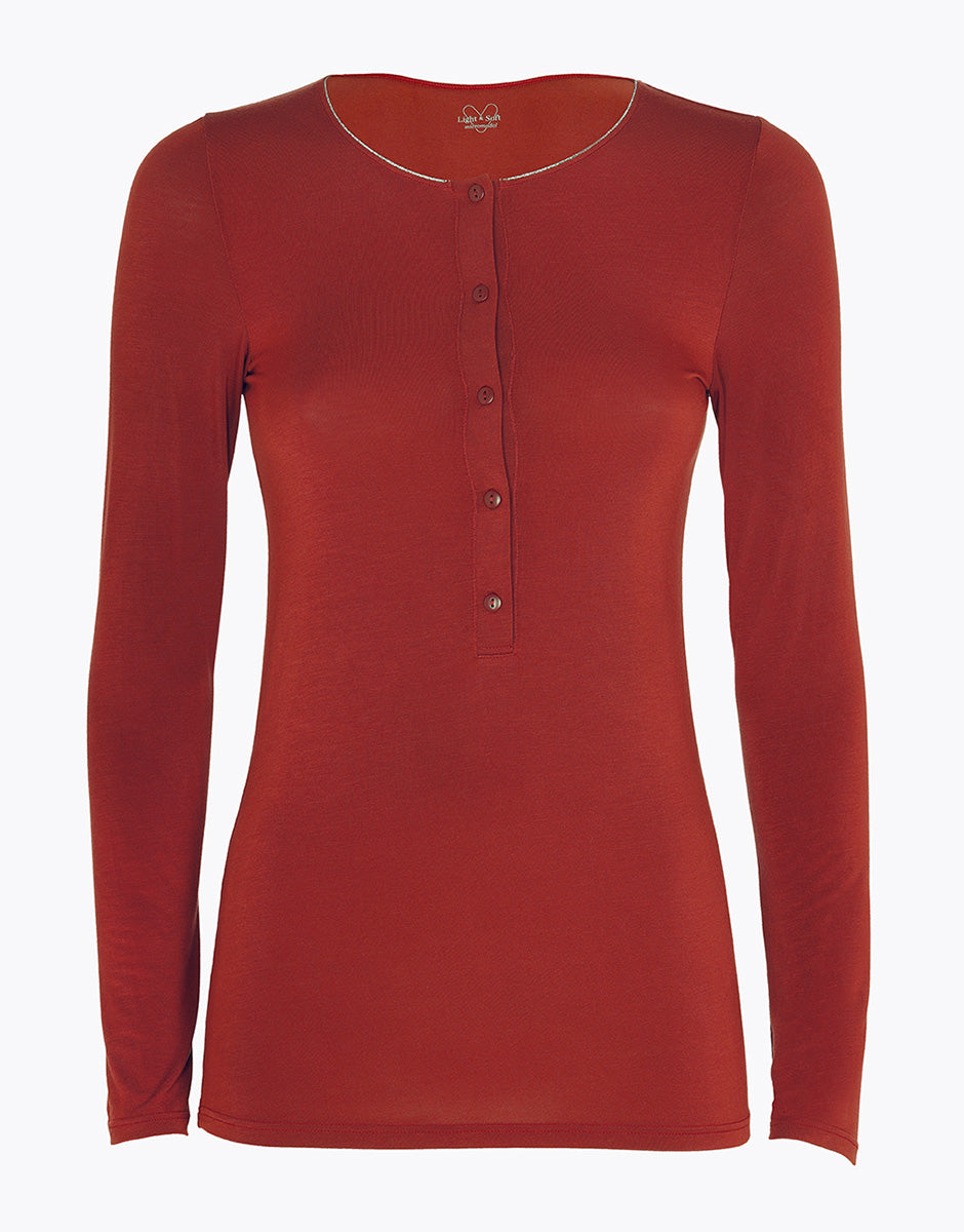 Maglia Manica Lunga Serafino Lungo Micromodal, rosso marrone