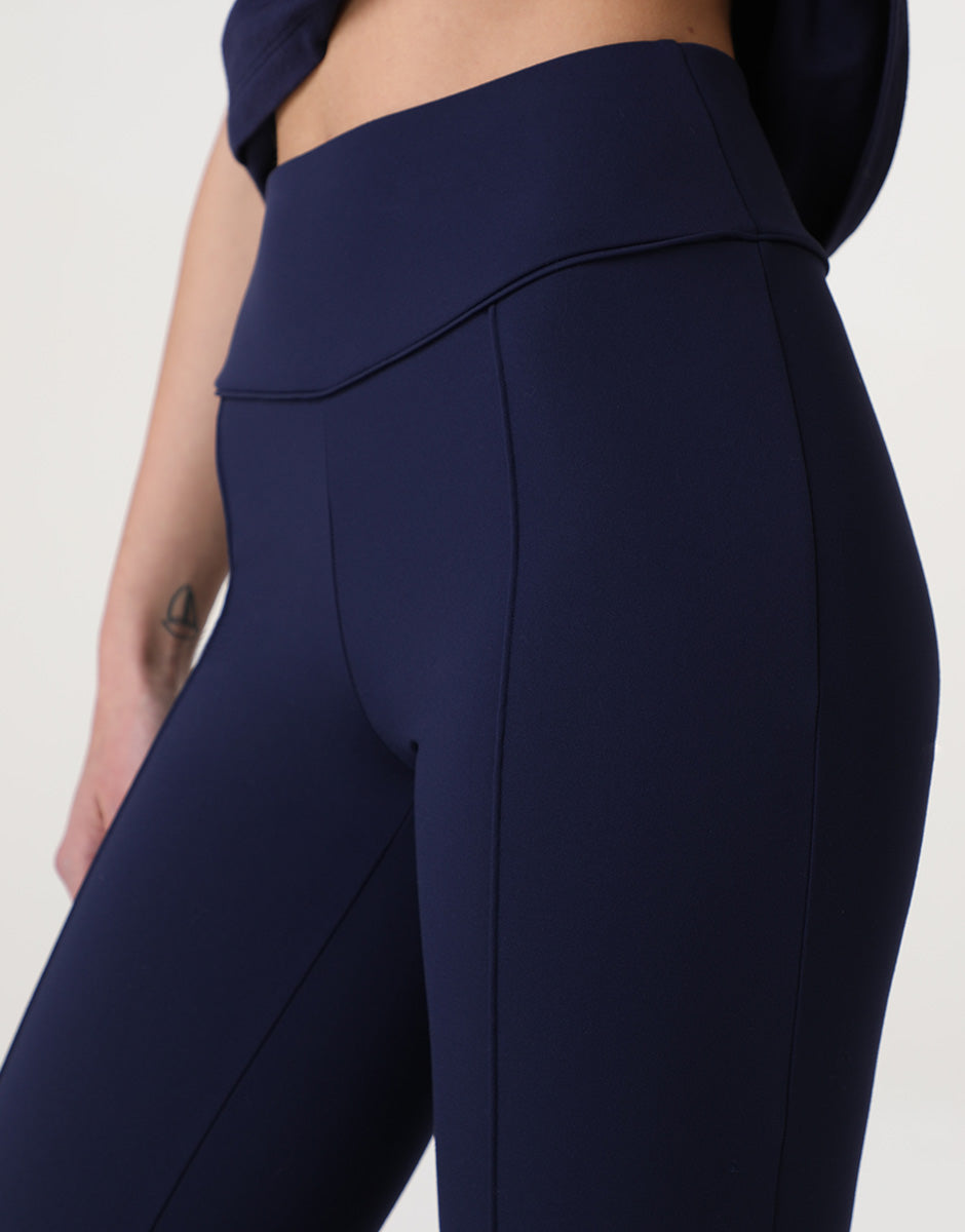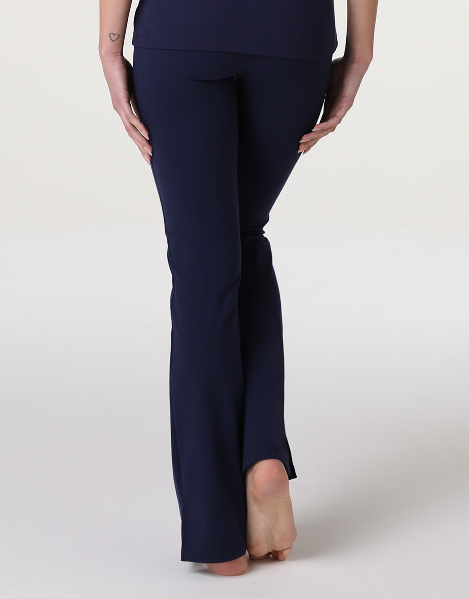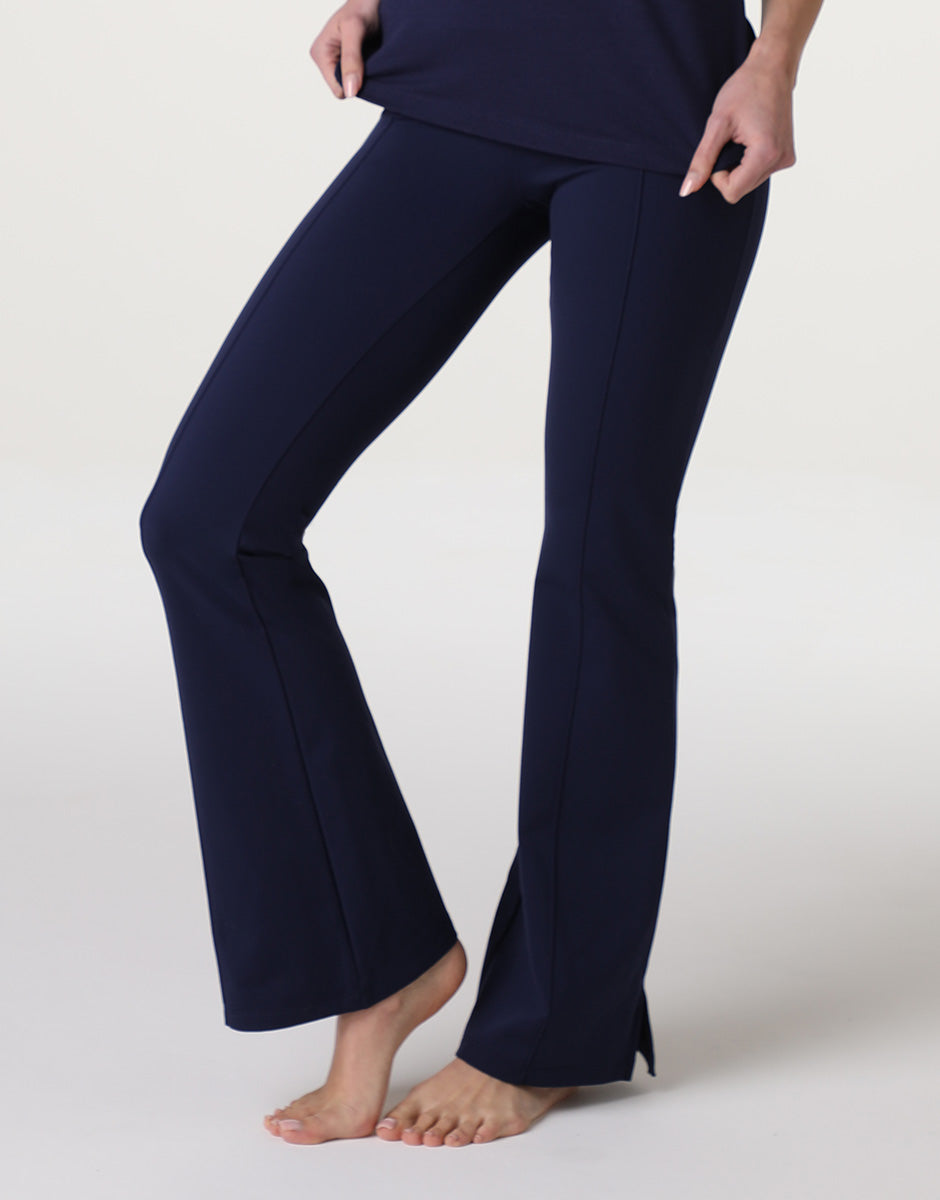 I pantaloni a zampa della linea Active Comfort, nel raffinato colore blu notte, offrono comfort e libertà di movimento, ideali per l’attività fisica e il tempo libero.