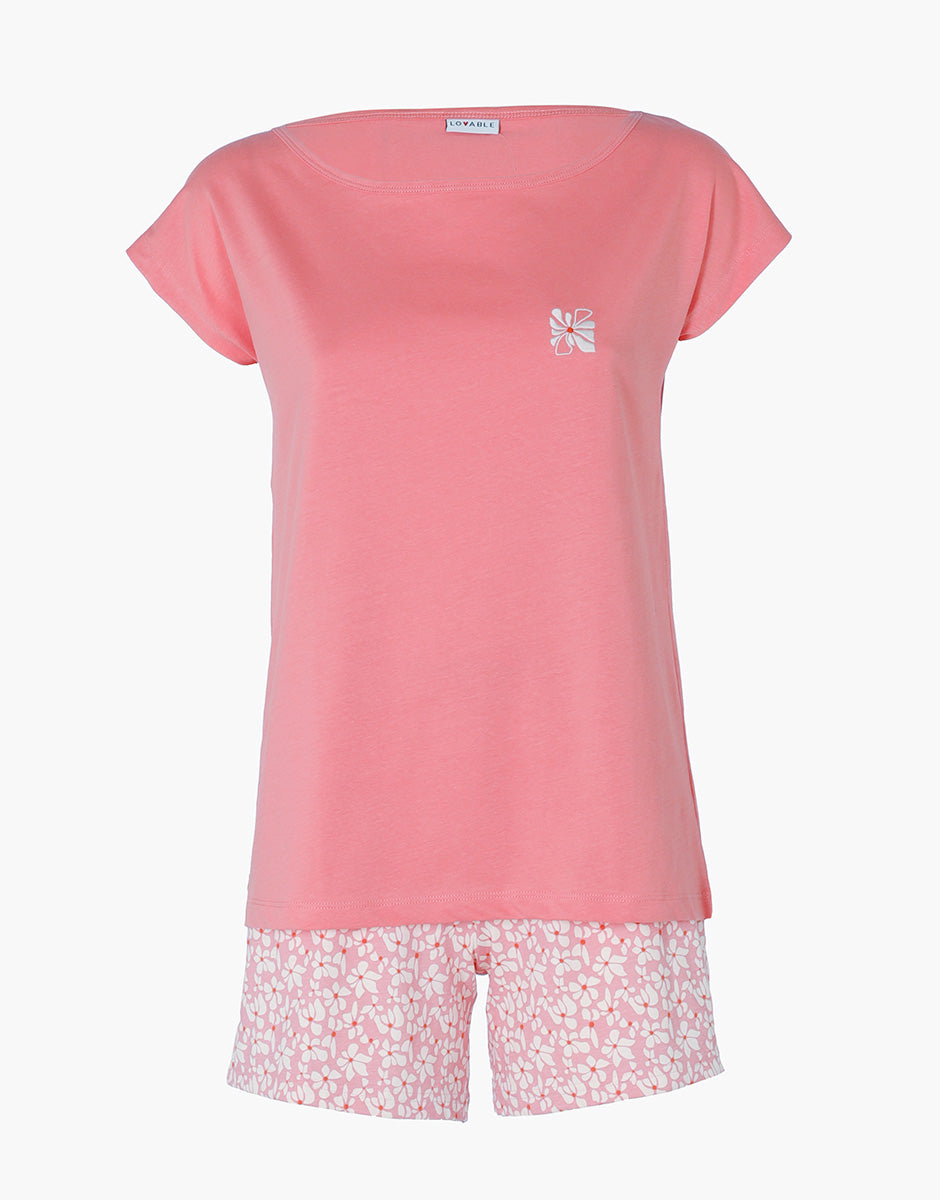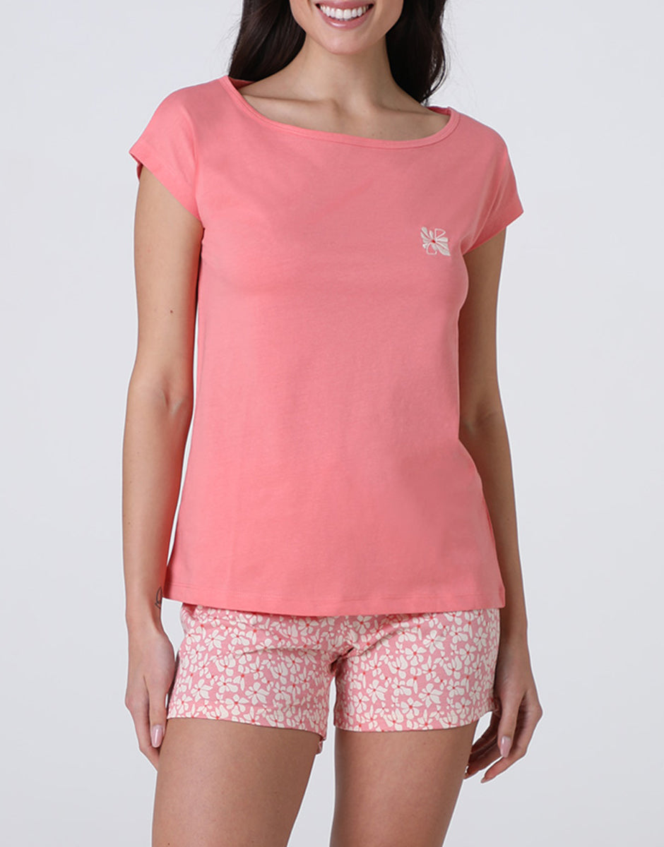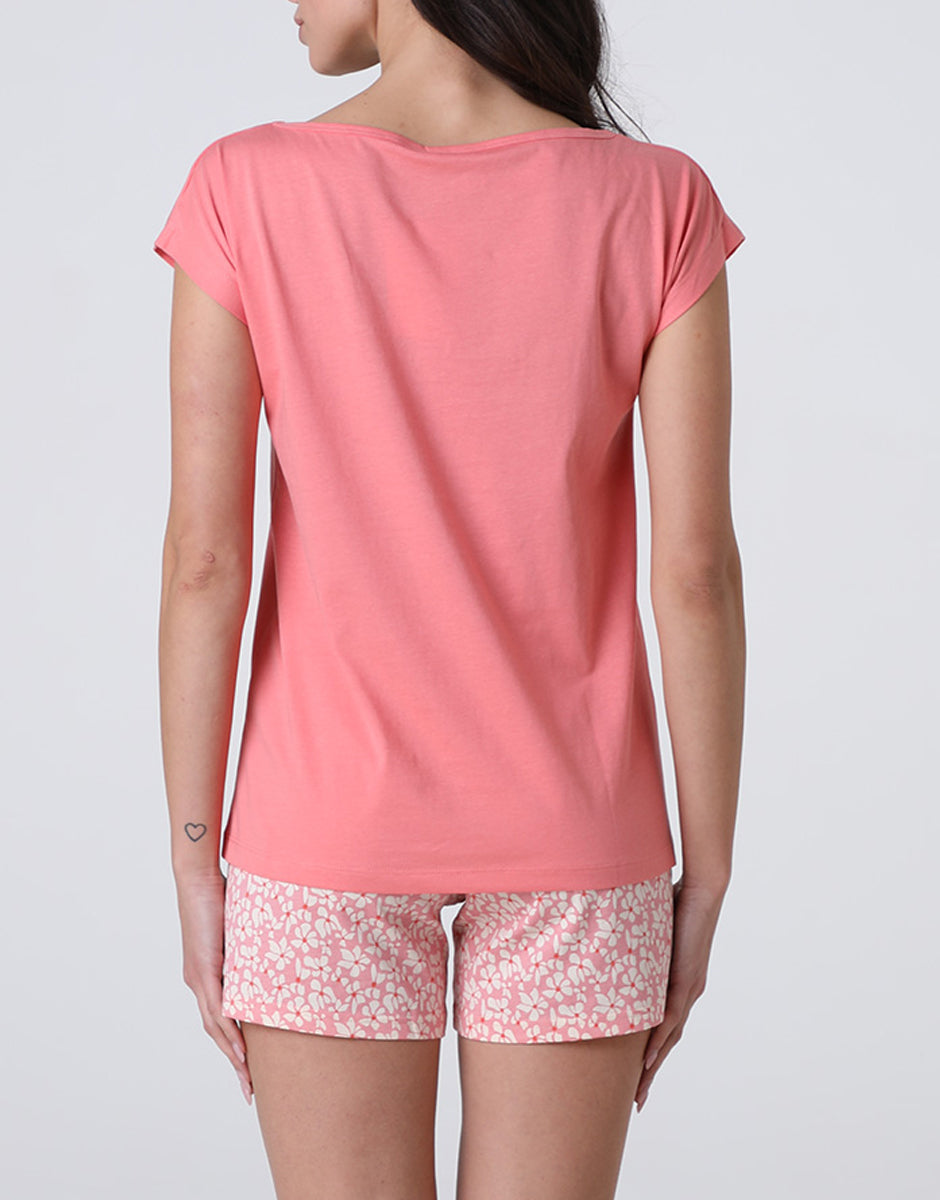 Un pigiama corto in jersey di cotone nel delicato e luminoso colore rosa pesco, perfetto per chi ama un tocco di freschezza e semplicità anche nei capi da notte. Questo completo leggero e confortevole è pensato per le tue serate in casa, per dormire o rilassarti con praticità e stile.