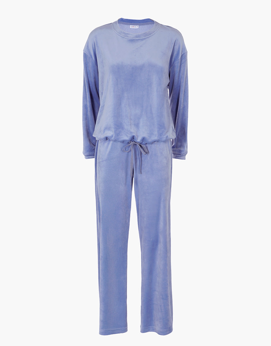 Un pigiama lungo da donna pensato per avvolgere il corpo con morbidezza e garantire comfort e calore durante le serate più fresche. Realizzato in ciniglia delicata di colore ortensia, il tessuto leggermente lucido accarezza la pelle, offrendo una sensazione di comfort piacevole e avvolgente. La linea femminile e semplice del pigiama lo rende perfetto per chi cerca un capo elegante ma pratico per le ore di relax a casa.