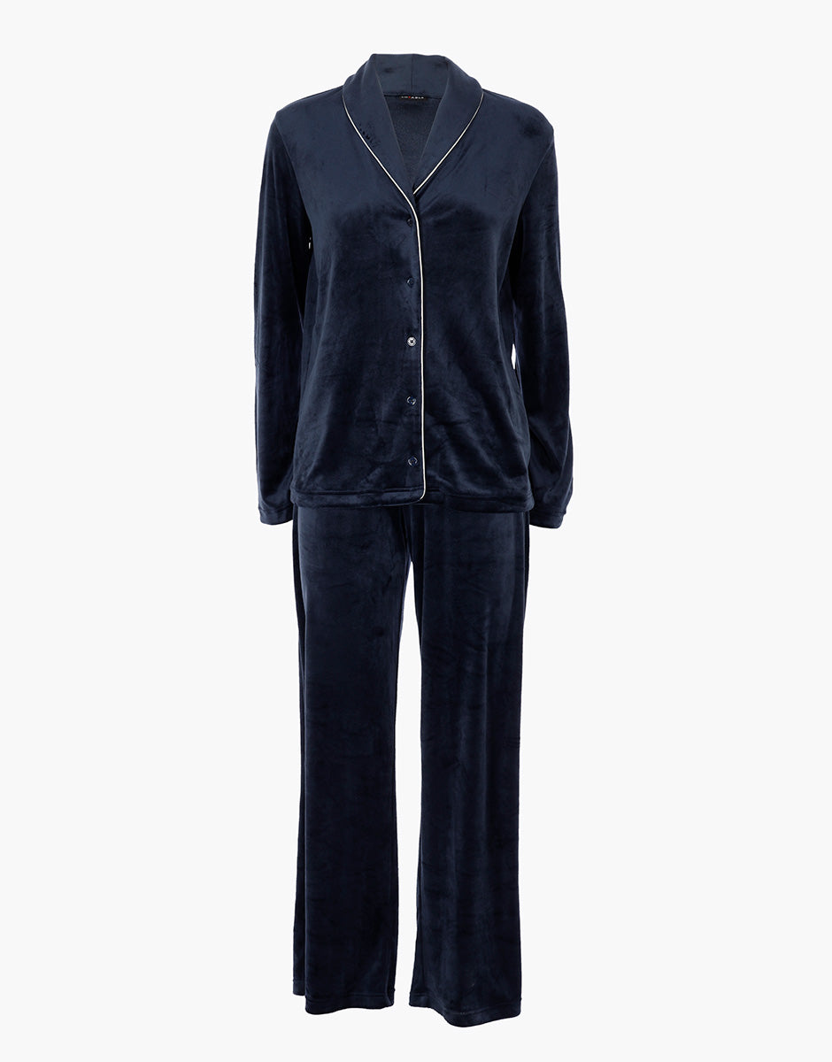 Pigiama Lungo aperto in Ciniglia, blu notte