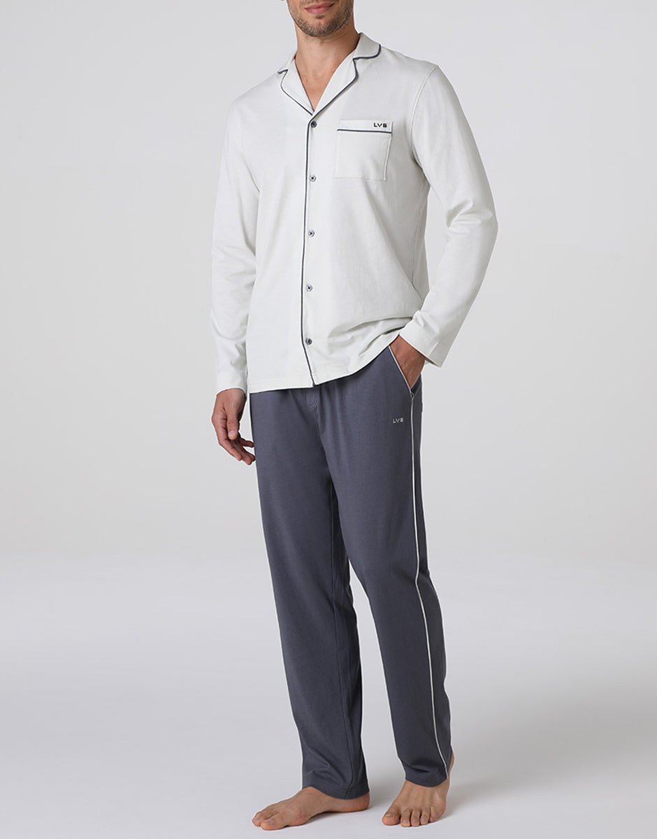 Un pigiama completo, confortevole e ben bilanciato, pensato per accompagnare il riposo con semplicità e qualità.