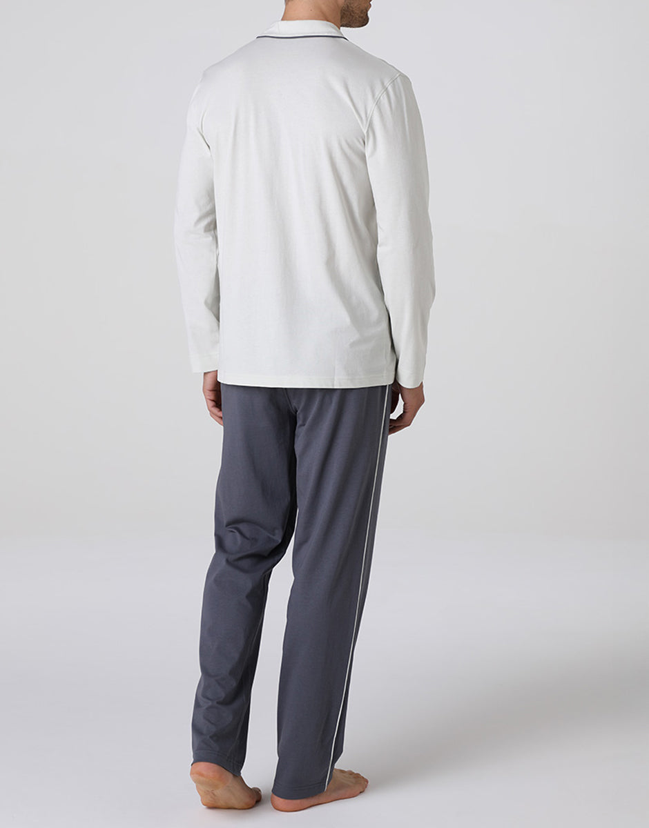 Il pigiama lungo da uomo in jersey di cotone è pensato per offrire comfort naturale e praticità nei momenti di riposo. Il tessuto in cotone è morbido, traspirante e piacevole sulla pelle, ideale per la notte e per il relax a casa.