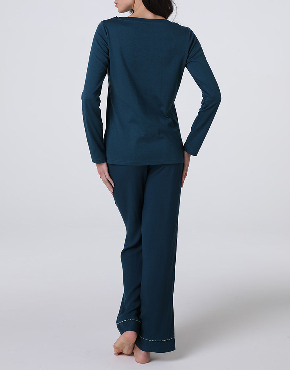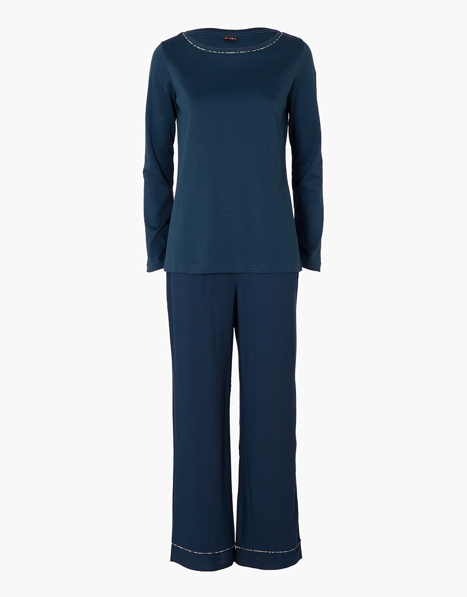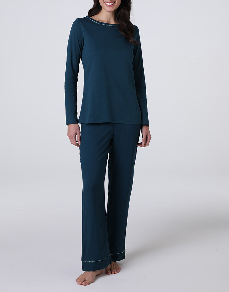 Pigiama Lungo Interlock e Tela di Viscosa, ottanio