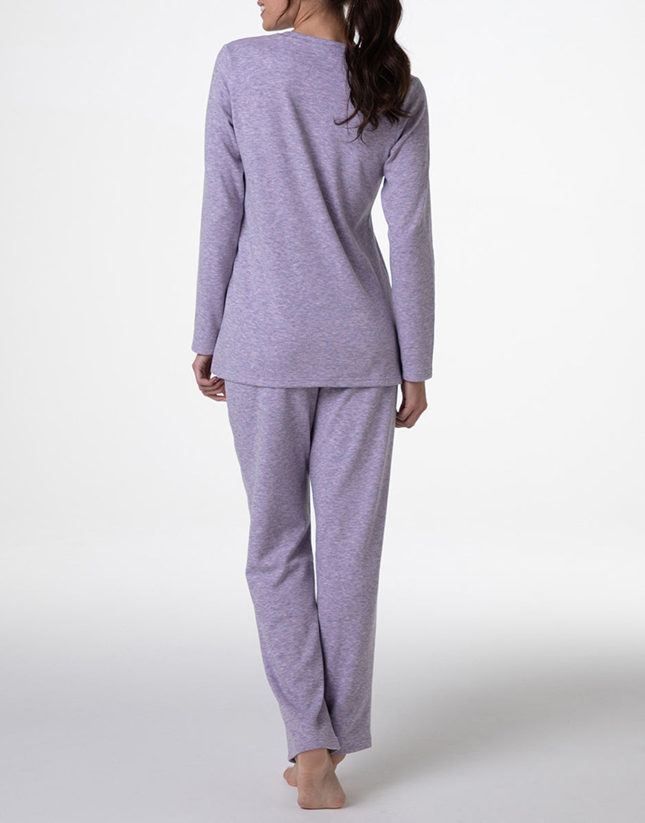 Un pigiama lungo da donna realizzato in morbido interlock garzato, pensato per avvolgere il corpo con calore e comfort durante le serate più fresche. Il colore rosa orchidea dona un tocco femminile e delicato, perfetto per chi cerca un homewear elegante e accogliente.