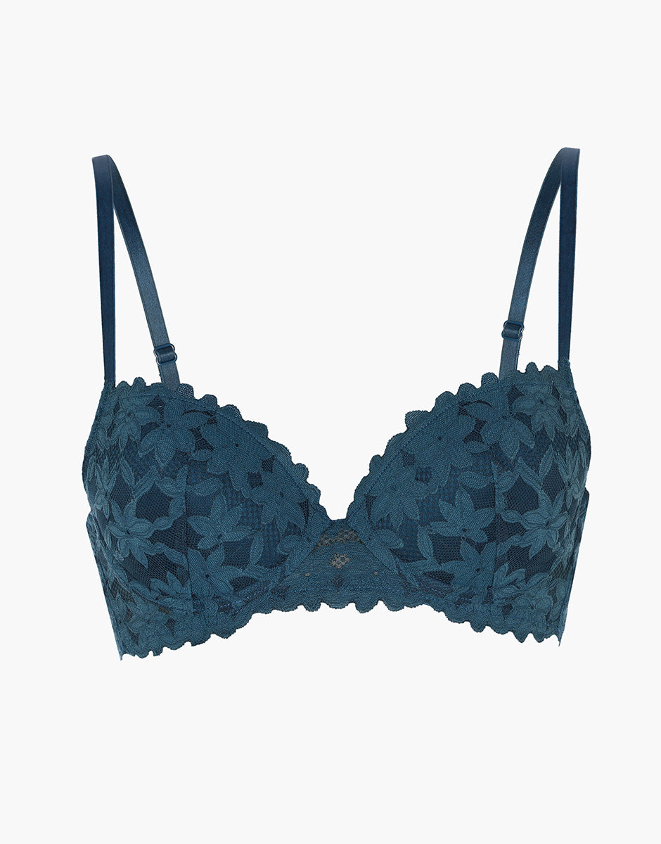 Reggiseno con Ferretto Push-Up Ribbon Lace in pizzo, ottanio