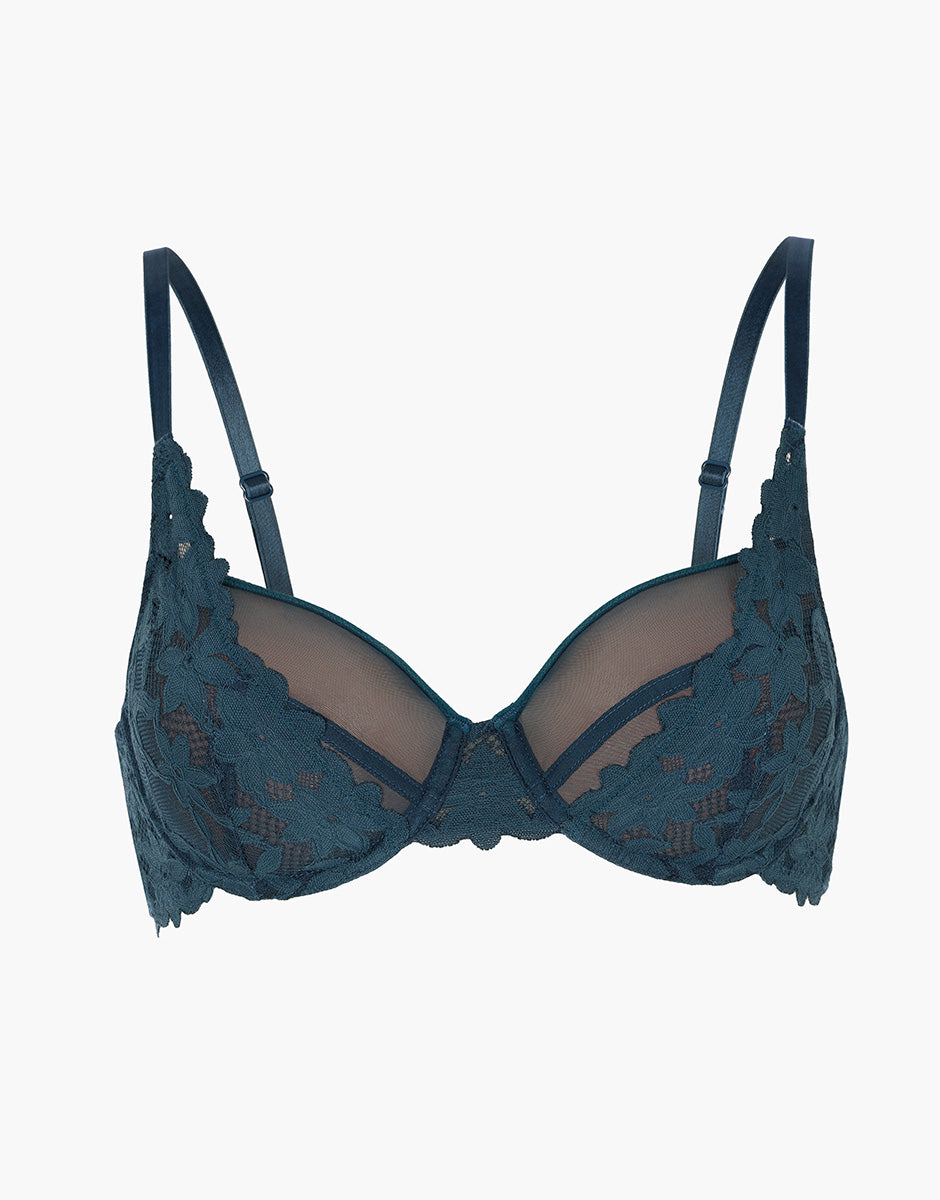 Scopri il Reggiseno con ferretto della collezione Ribbon Lace, realizzato in tulle e pizzo in un elegante ottanio.