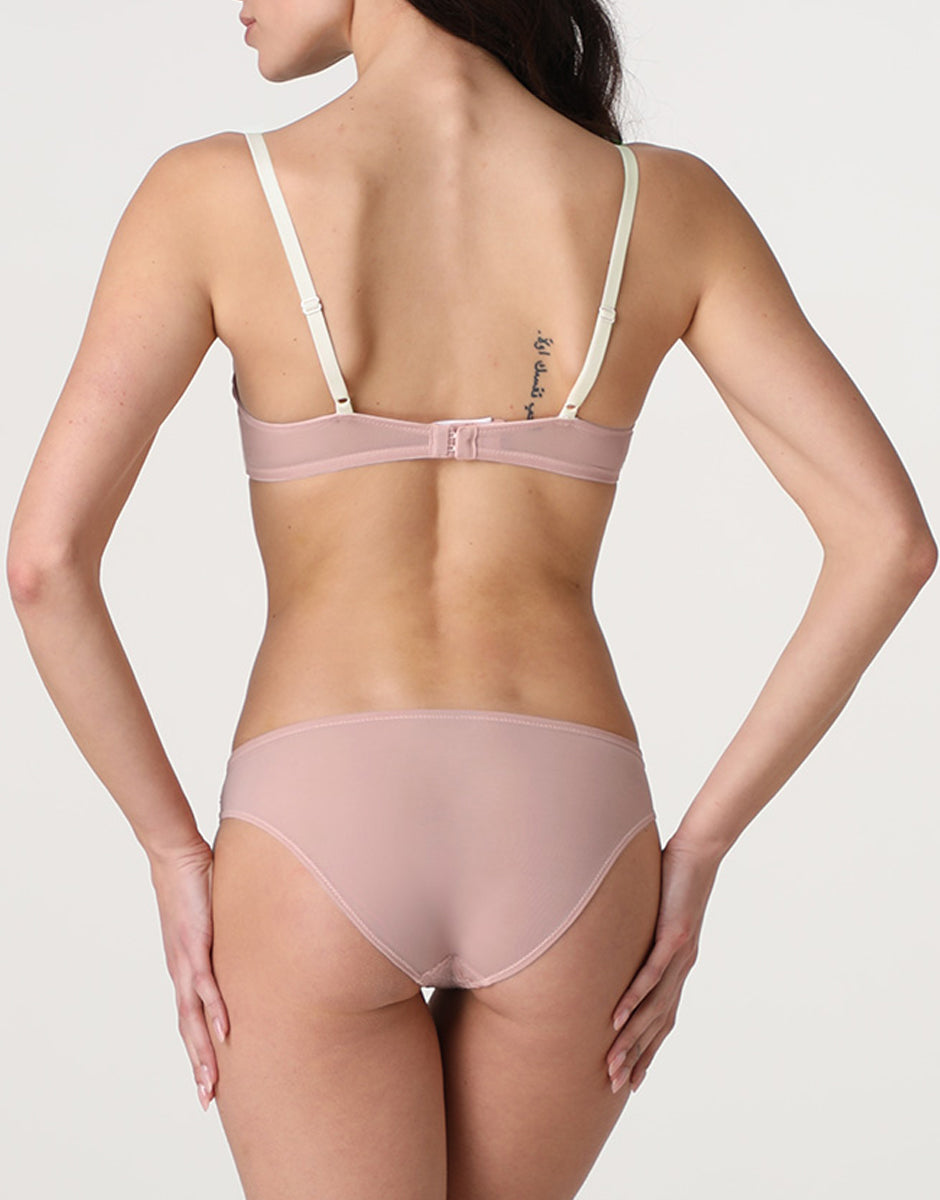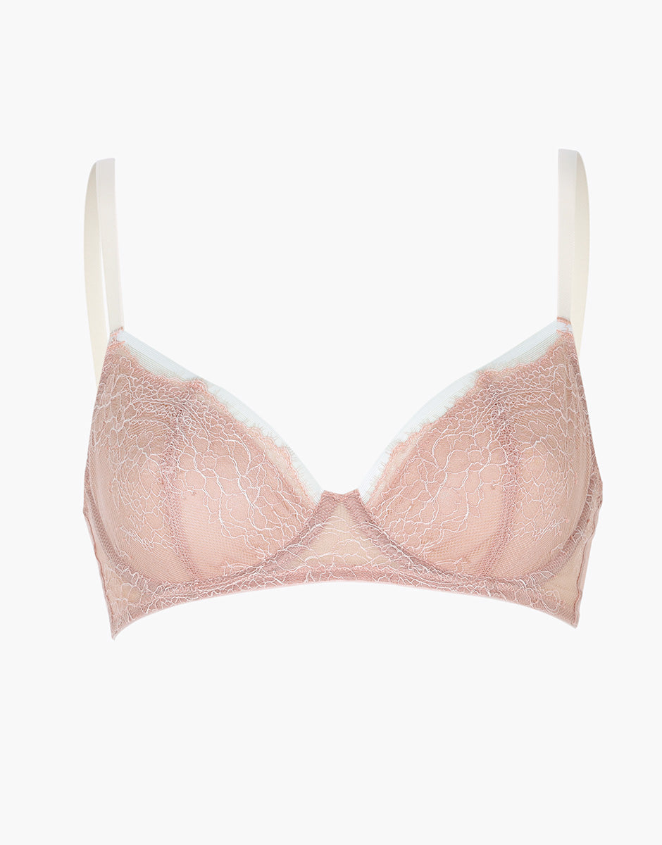 Scopri il reggiseno con ferretto della collezione Royal Lace, realizzato in raffinato pizzo rosa antico. Le coppe con cucitura verticale modellano delicatamente il décolleté, mentre il sottoseno in pizzo valorizza la silhouette con eleganza.