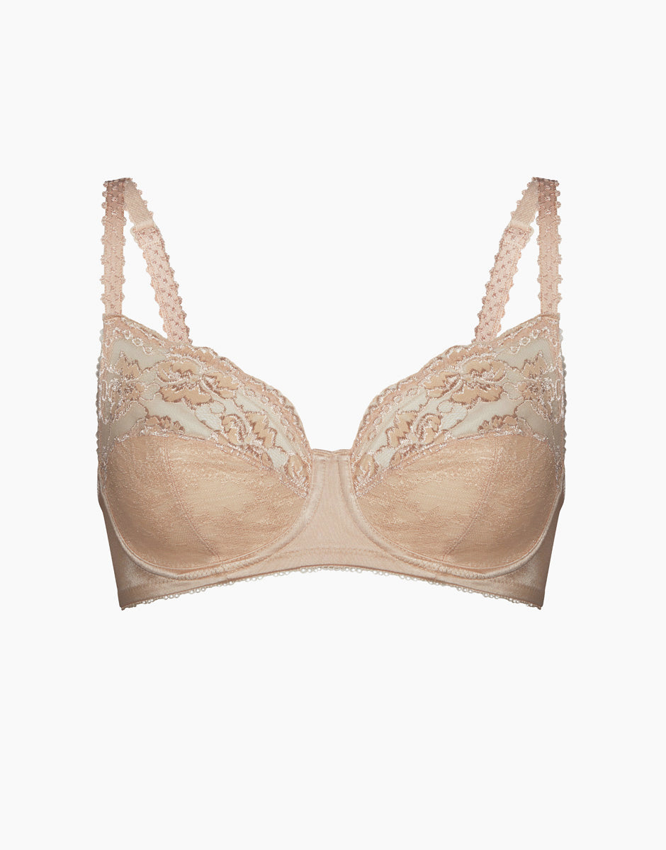 DESCRIZIONE: Amo indossare questo reggiseno ogni giorno perché mi dà sostegno sicuro e nel contempo ha un look elegante e femminile. Il suo aspetto sofisticato e il suo prezioso pizzo decorato con motivi floreali mi fa sentire perfetta ogni giorno. Il mio seno generoso è sostenuto al meglio e valorizzato con eleganza.
