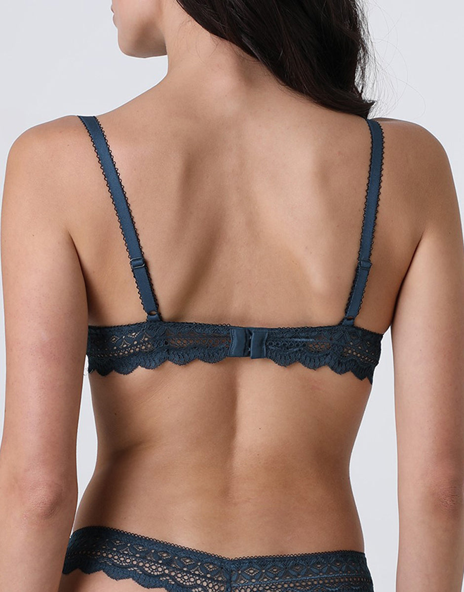 Le spalline decorative con bordatura picot conferiscono eleganza e sono regolabili per una vestibilità su misura. Il colore ottanio, un blu profondo e moderno, rende questo reggiseno perfetto per chi cerca un intimo funzionale ma dallo stile ricercato.