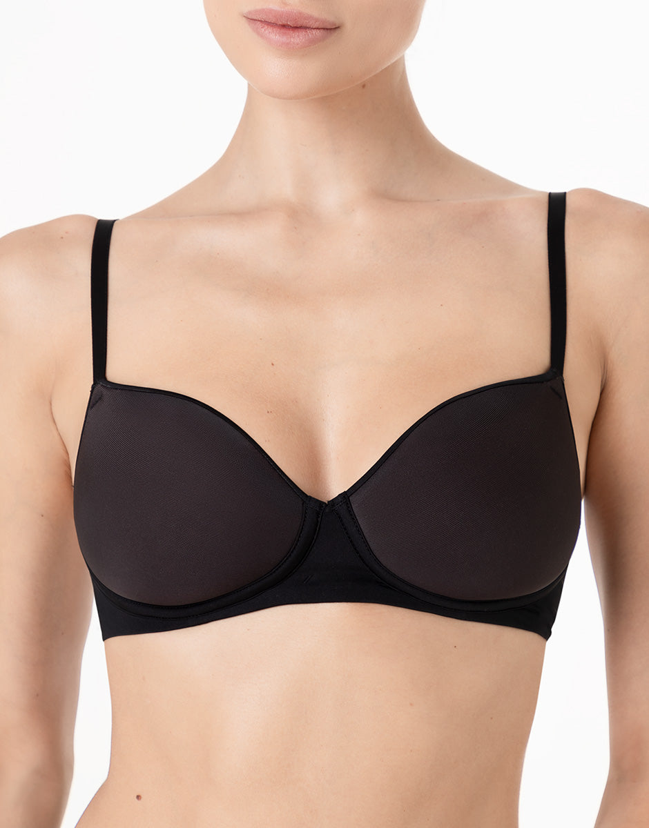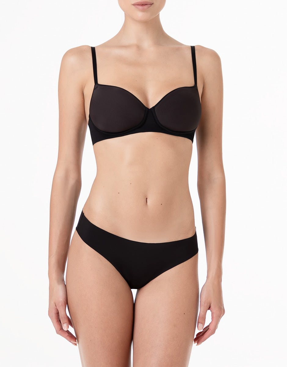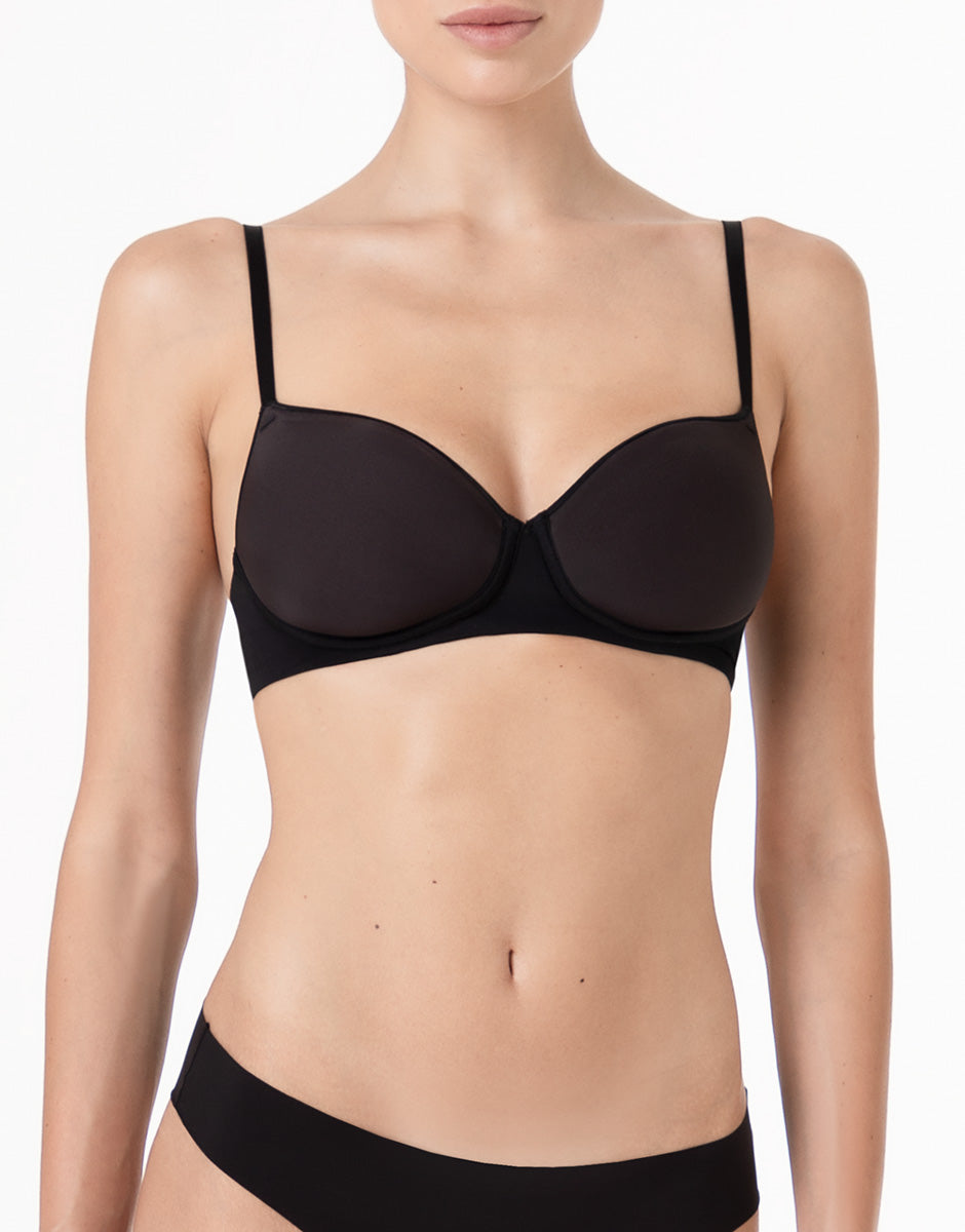 La coppa spacer offre una copertura confortevole e una linea definita, mantenendo il capo leggero da indossare. Il profilo del décolleté con bordo termosaldato crea una resa liscia a contatto con la pelle e contribuisce a un effetto uniforme sotto gli abiti. L’assenza del ferretto mantiene una linea essenziale e una sensazione di maggiore libertà nei movimenti.