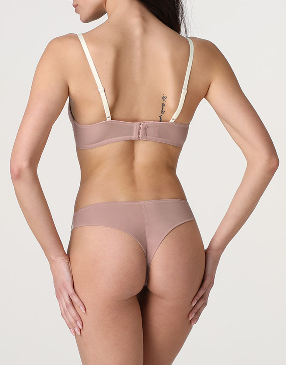 Scopri il reggiseno triangolo della collezione Royal Lace, realizzato in raffinato pizzo rosa antico con dettagli in tulle bianco a contrasto. Le coppe con pinces modellano delicatamente il décolleté, offrendo una vestibilità naturale e confortevole senza ferretto.