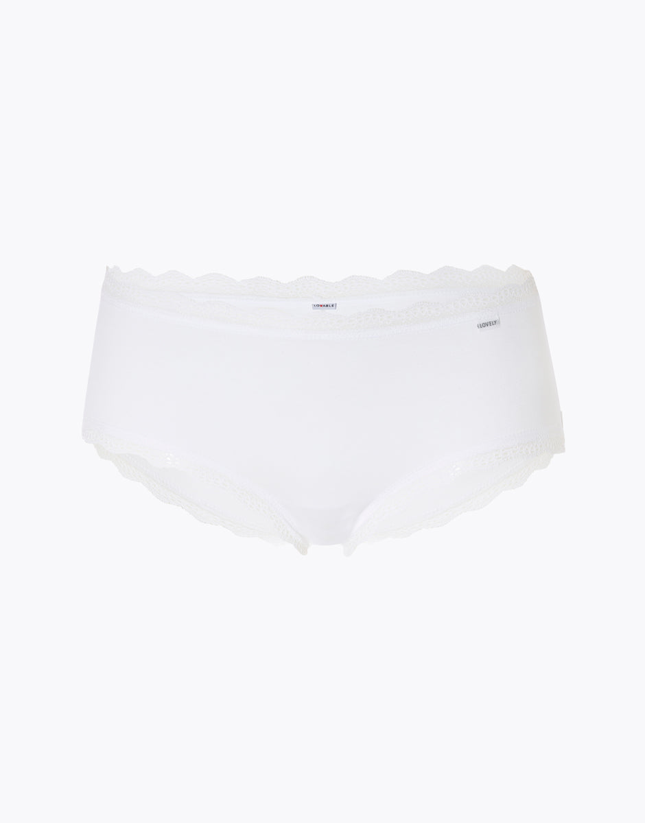 Shorty lovely in cotone elasticizzato e pizzo, bianco