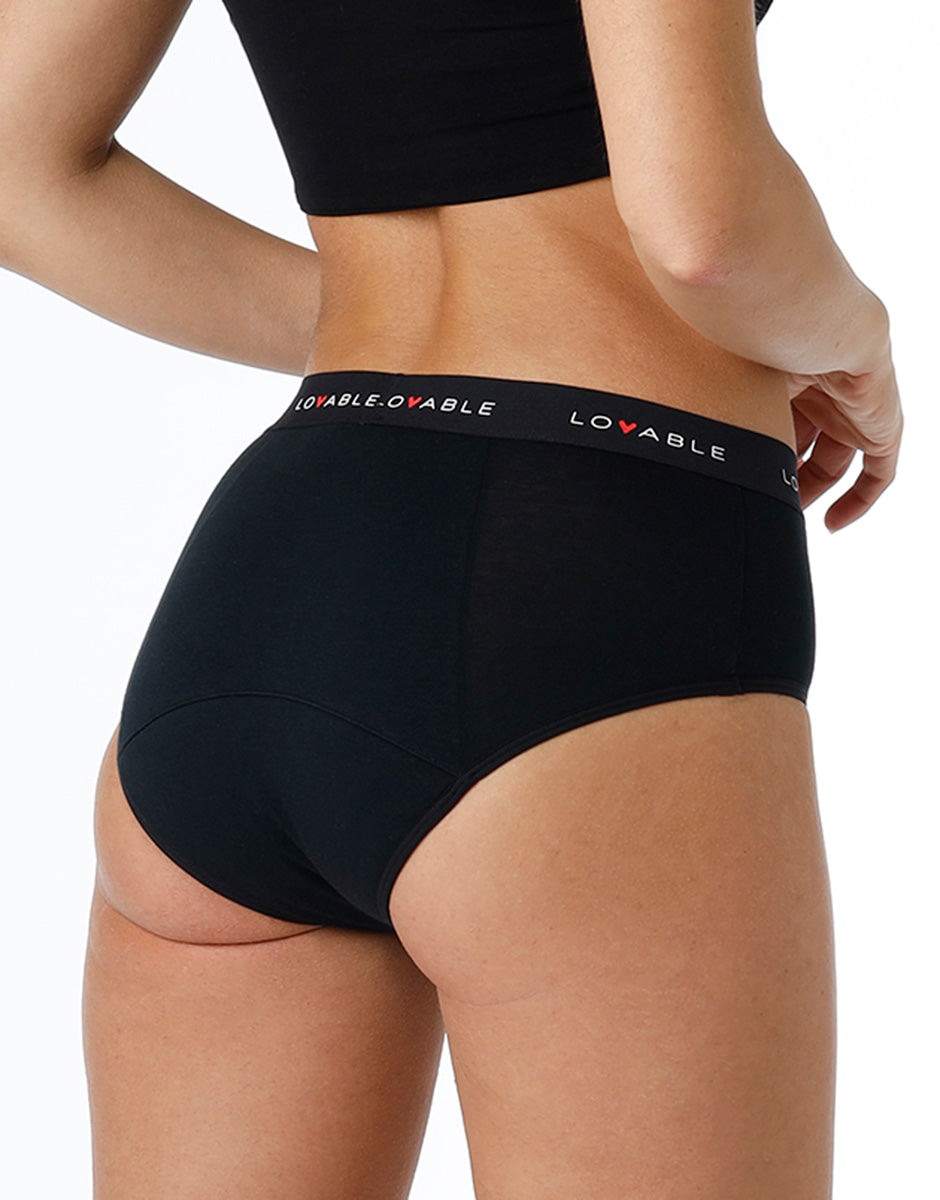 Questo slip mestruale, con assorbenza a flusso abbondante, offre comfort e protezione durante la giornata o la notte, garantendo fino a 12 ore di copertura continua. Realizzato con materiali traspiranti e morbidi, è ideale per chi desidera sentirsi sicura e a proprio agio in ogni momento, anche durante le attività sportive. Gli Slip alti da ciclo della serie LOVABLE PANTIES sono disponibili in colore nero, perfetto per essere discreti e alla moda. Il nuovo design delle forme assicura una vestibilità perfetta e confortevole, adattandosi al corpo e offrendo una protezione affidabile durante i giorni di flusso mestruale.