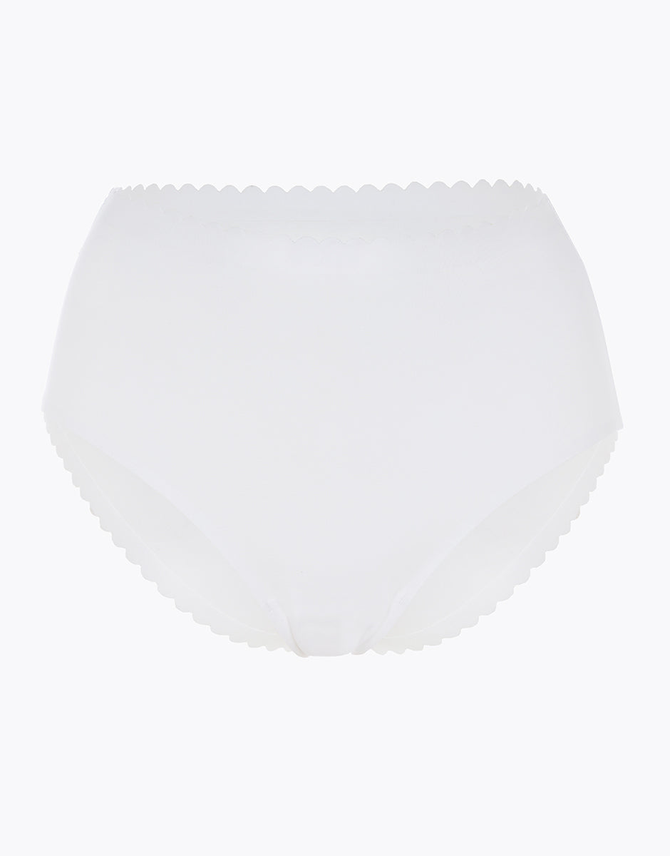 Scopri il comfort senza pari con il nostro Slip Alto Invisible Softness bianco. Realizzato con cotone elasticizzato, questo slip alto offre un'esperienza di morbidezza e aderenza impeccabile. L'assenza di bordi elastici sul girovita e sul girogambe, con finitura taglio a vivo e rinforzo adesivato, garantisce una vestibilità senza cuciture visibili. Il motivo festonato sul girovita aggiunge un tocco di eleganza e femminilità.