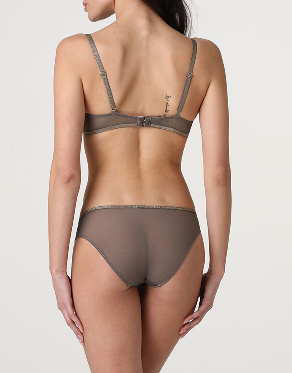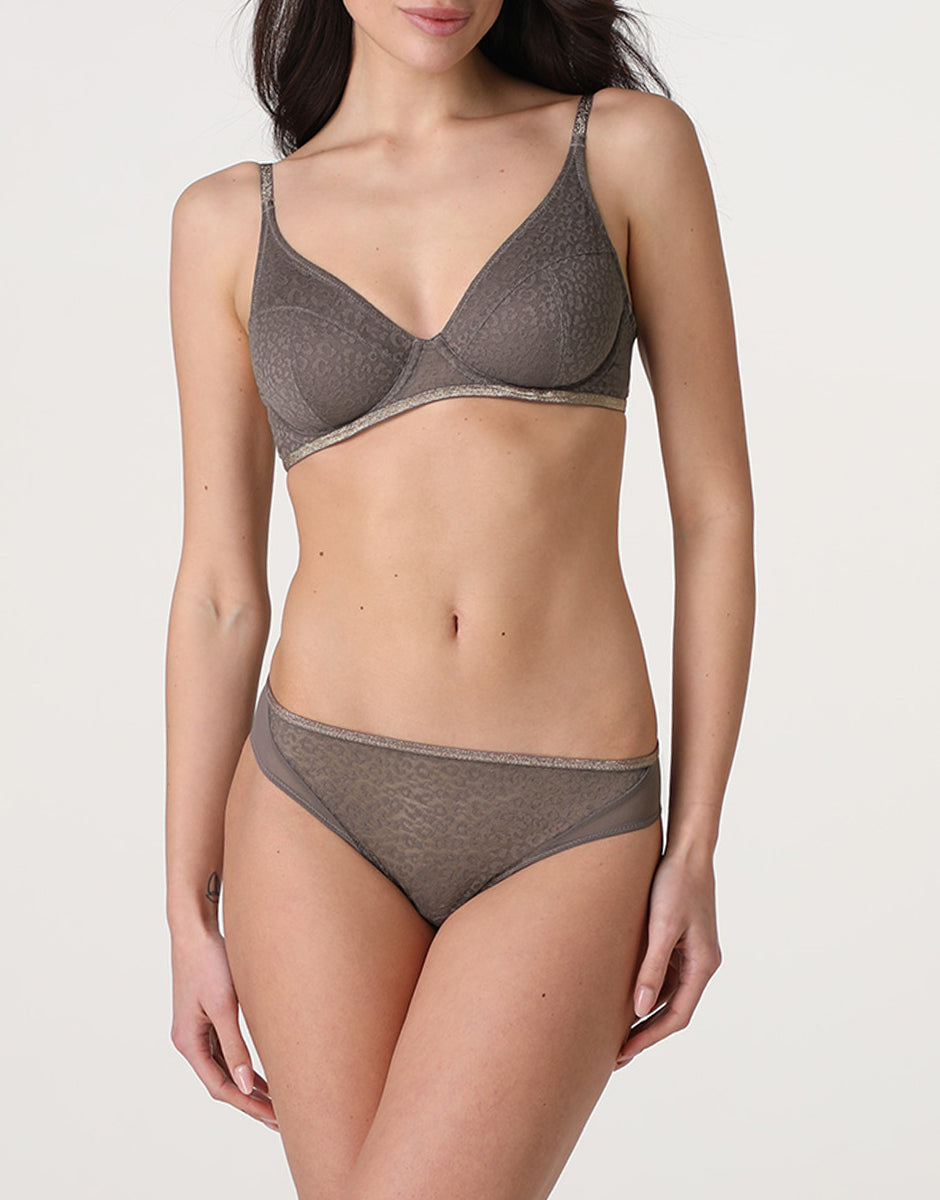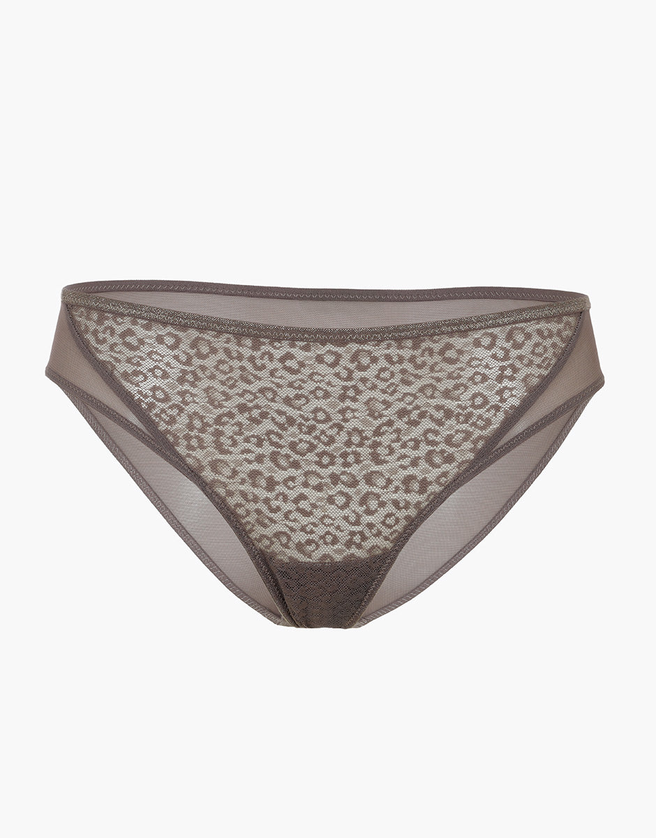 Scopri lo slip della collezione Animalier Mesh, realizzato in raffinato tulle fantasia animalier nella tonalità visone. Il fronte in tulle fantasia, arricchito da inserti laterali in tulle trasparente, esalta la femminilità con un gioco di contrasti leggero e sofisticato.