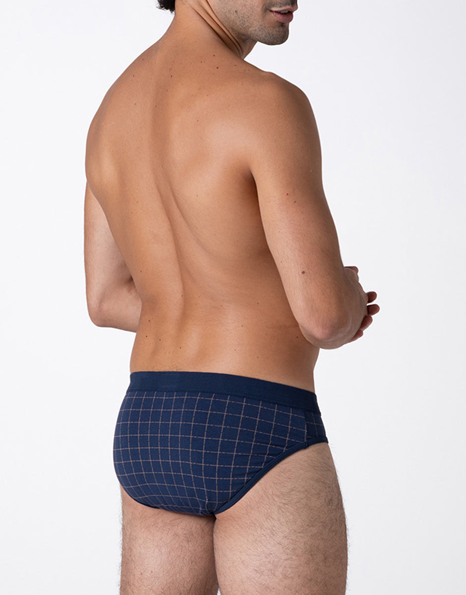 Scopri lo Slip della linea Casual Stretch Cotton, con stampa a quadri color cognac su fondo blu. Realizzato in cotone elasticizzato, è pensato per offrire comfort, libertà di movimento e una vestibilità elasticizzata, per un fit comodo e dinamico.