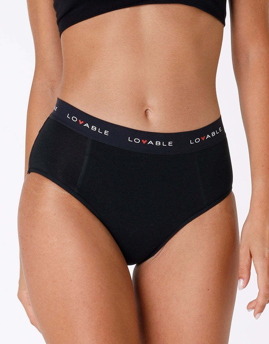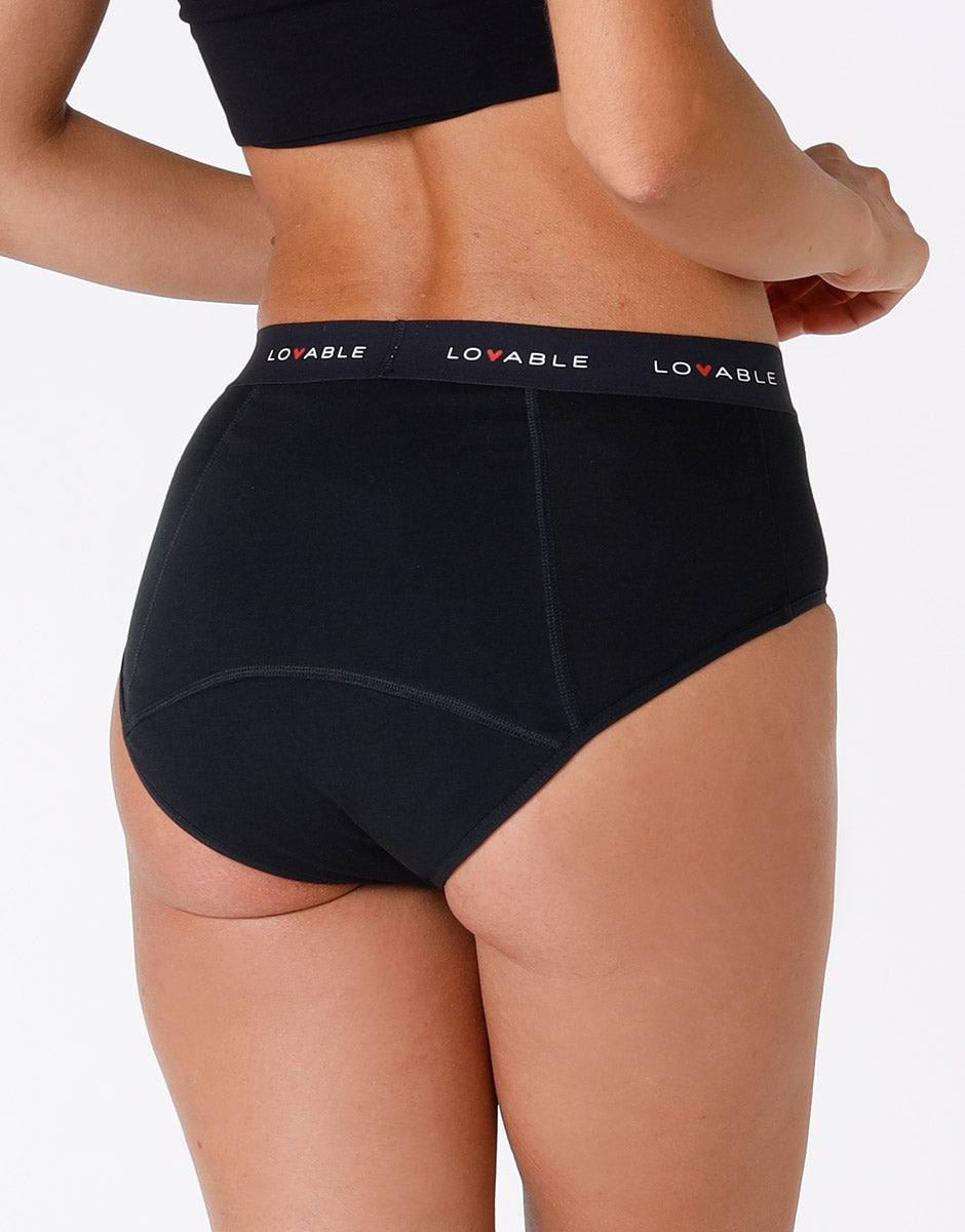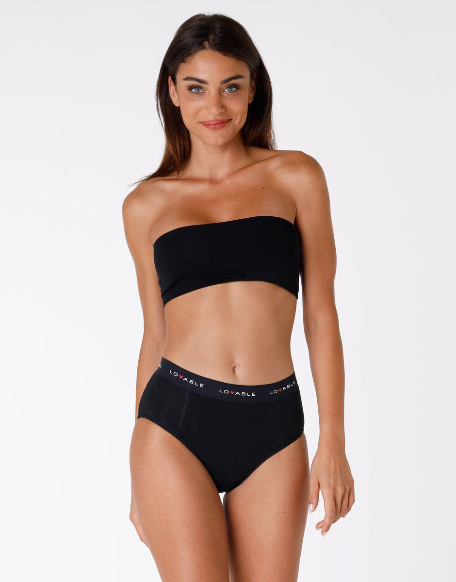Slip da ciclo lavabile alto flusso medio in cotone biologico certificato, nero