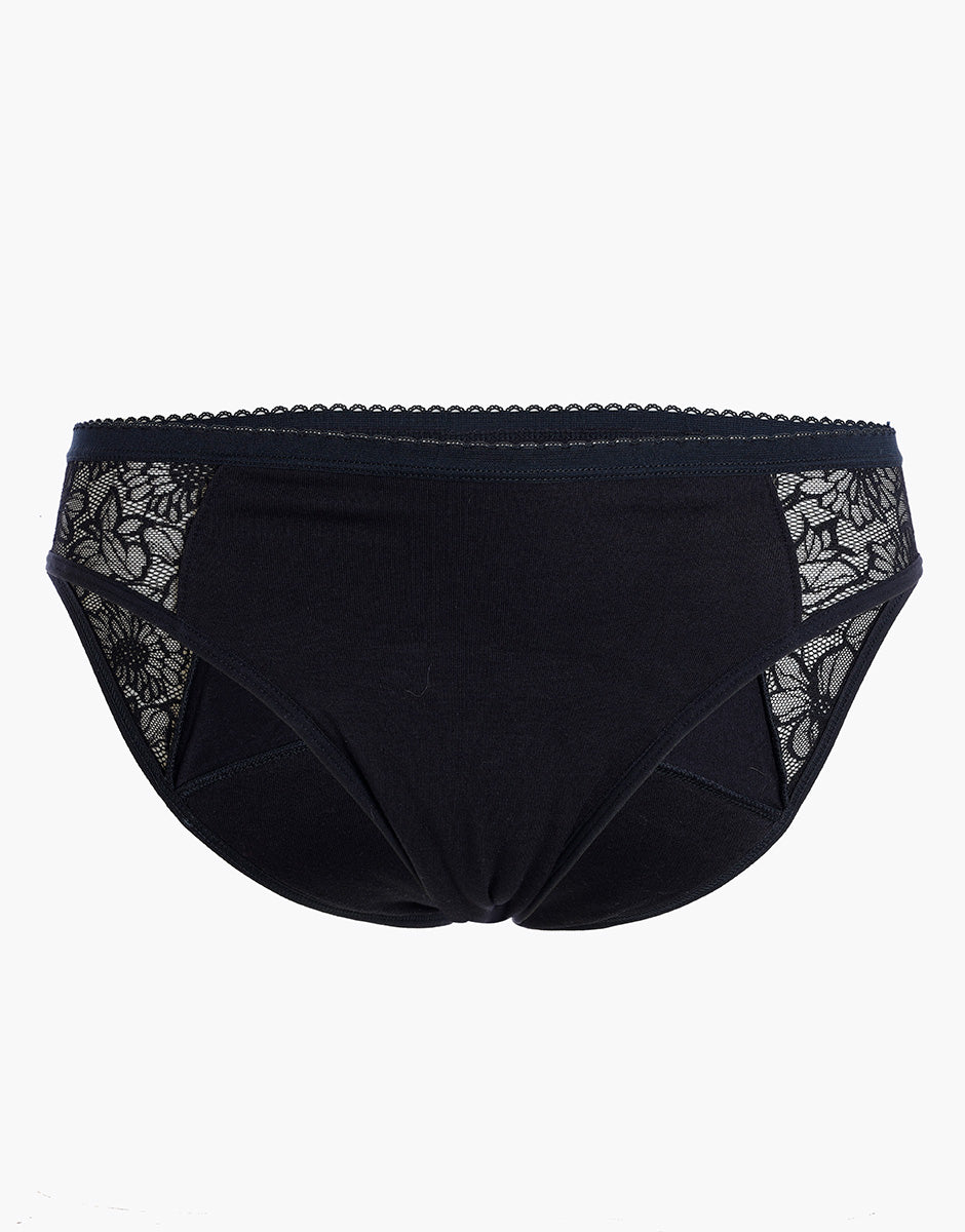 Slip da ciclo lavabile flusso abbondante in cotone e pizzo, nero