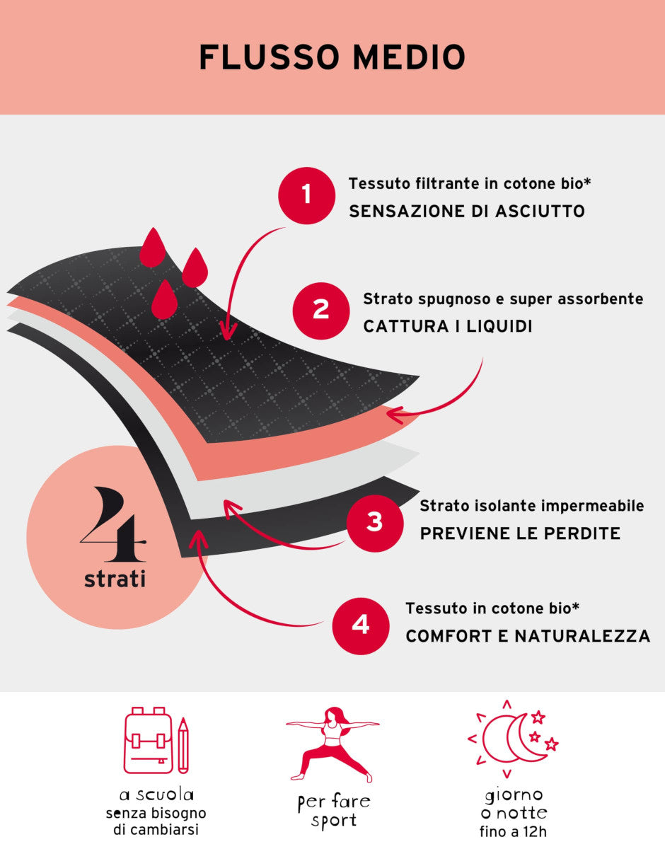 Scopri il vantaggio del comfort di un normale slip combinato con un sistema di assorbenza avanzato per il ciclo mestruale. Questi slip innovativi offrono fino a quattro livelli di assorbenza, garantendo una protezione efficace fino a 11 ml di flusso. Il tessuto principale è composto al 95% da cotone biologico, assicurando morbidezza e traspirabilità, mentre il restante 5% è costituito da elastan per una maggiore elasticità e adattabilità.