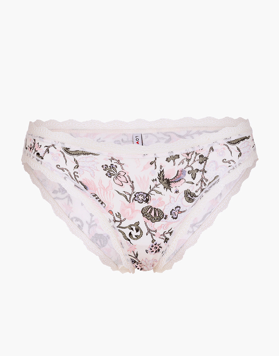 Scopri lo slip della collezione Lovable Panties in cotone e pizzo elasticizzati, nella delicata e romantica stampa giardino su fondo avorio, perfetta per un look fresco e originale. La combinazione di cotone e pizzo garantisce comfort e morbidezza sulla pelle. La balzina di pizzo avorio che rifinisce girovita e girogamba aggiunge un dettaglio elegante e raffinato.