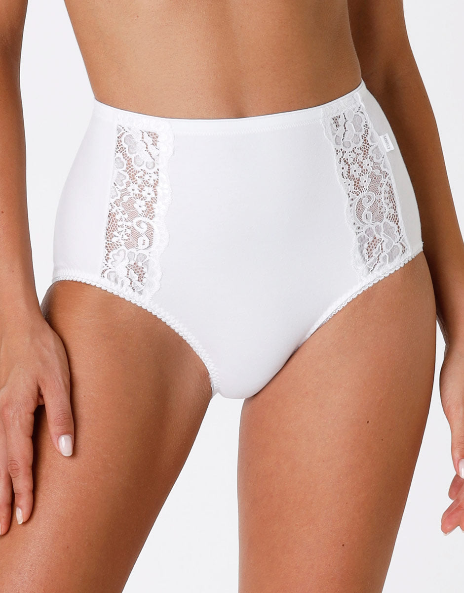 Slip maxi lovely charme, bianco in cotone elasticizzato con pizzo