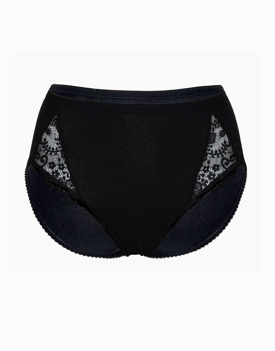 Slip midi Lovely Charme nero in cotone elasticizzato con pizzo