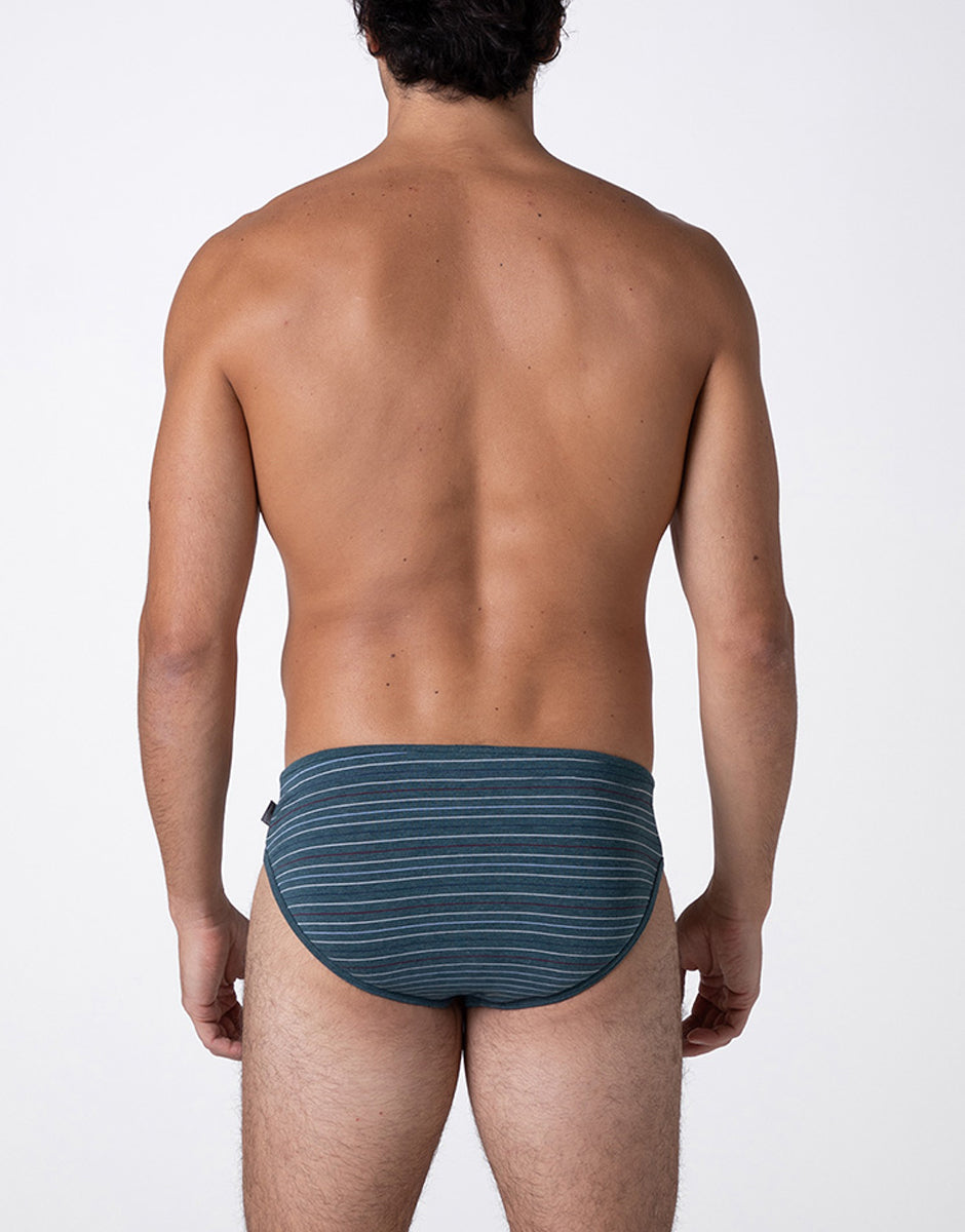 Scopri lo Slip della linea Rephined Cotton Modal, proposto con motivo rigato tinto in filo nei toni del verde.