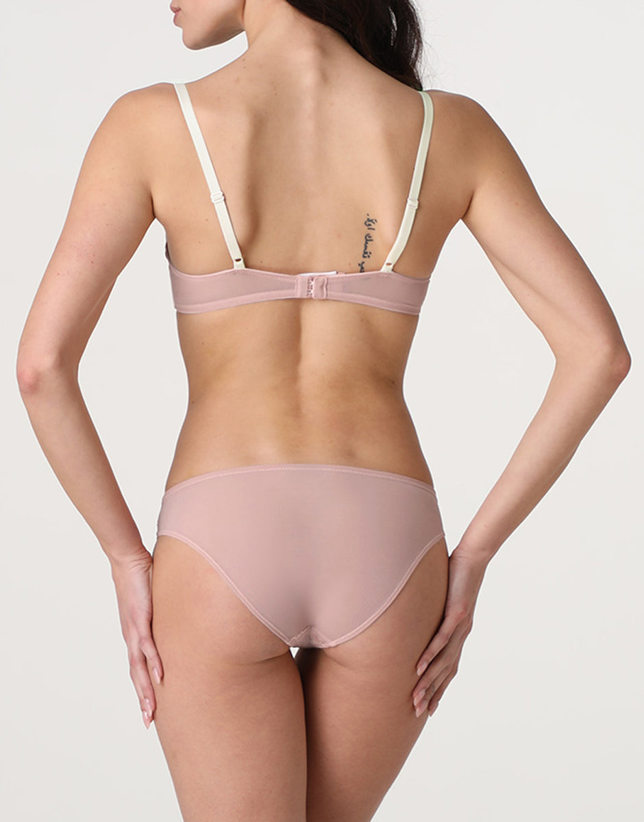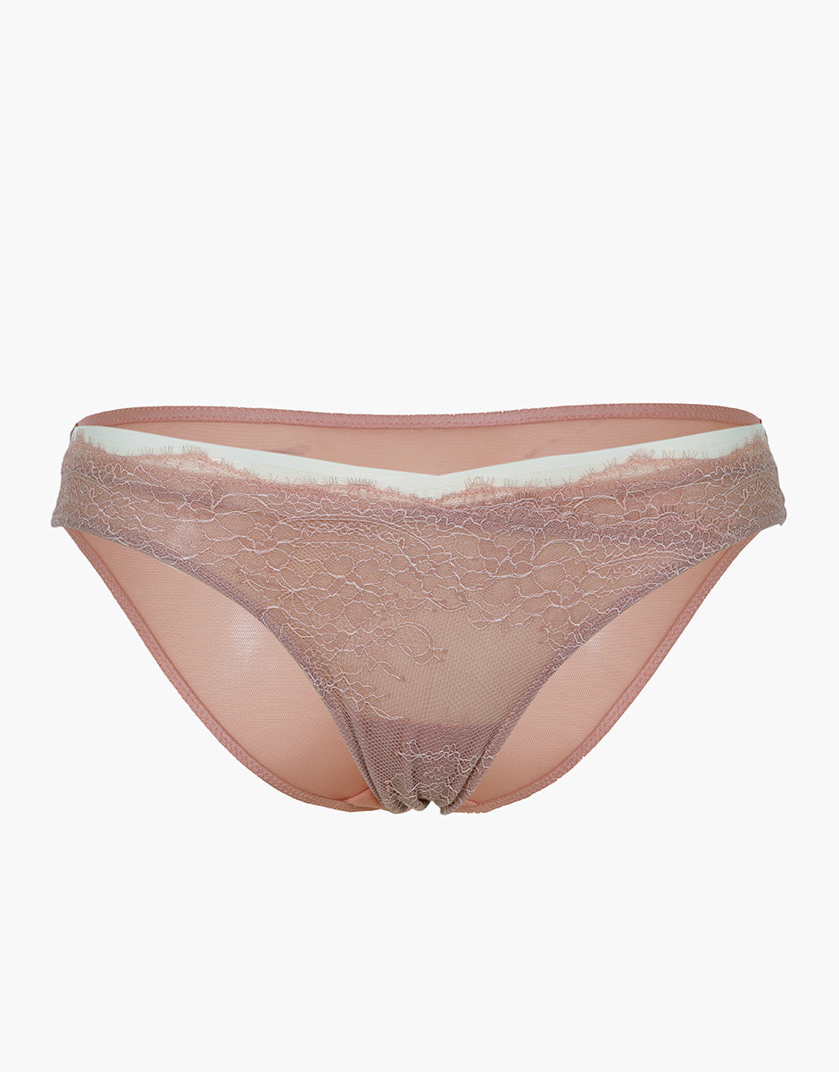 Scopri lo slip della collezione Royal Lace, realizzato in raffinato pizzo rosa antico. Il fronte è valorizzato da un elegante dettaglio incrociato al centro e dal profilo davanti in tulle bianco a contrasto, che dona un tocco delicato e femminile. Il retro in morbido tulle assicura comfort e leggerezza, rendendo il capo piacevole da indossare.
