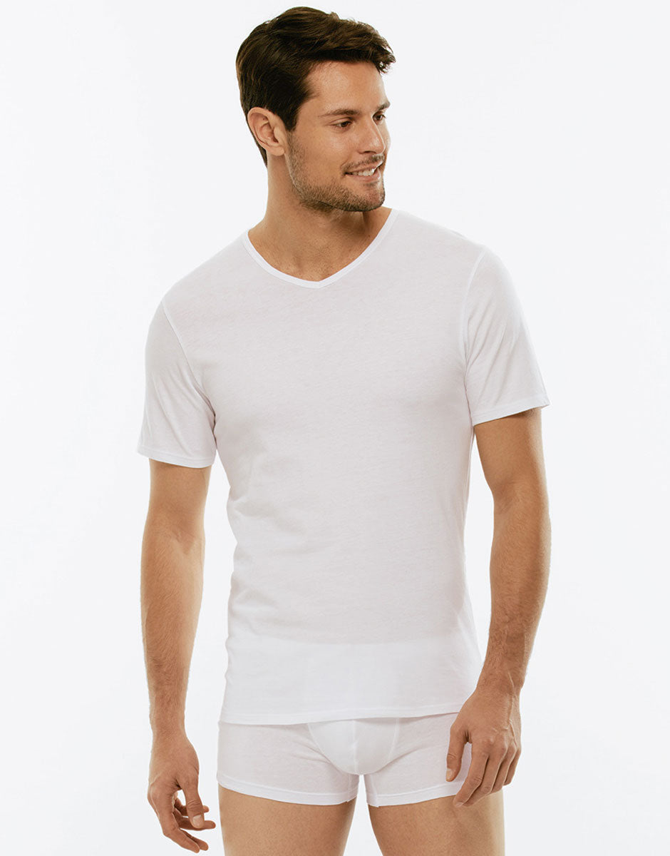 CONSIGLIATO PERCHÉ: Alla base dei tuoi look ami indossare capi d’intimo semplici nel design e dall’alta qualità. Questa t-shirt con scollo a V è una scelta vincente per vestire ogni tua giornata in maniera basic ed efficace. Perfette da indossare sotto i tuoi look di lavoro o nel tempo libero, grazie al suo stile estremamente versatile.