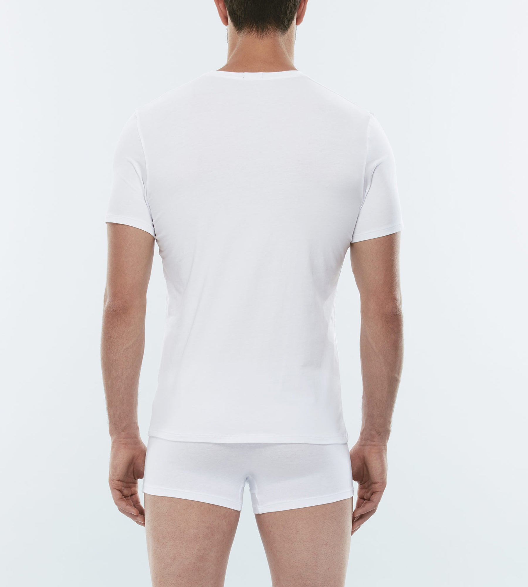 T-Shirt Cotton Stretch bianco in cotone elasticizzato con scollo a V profondo