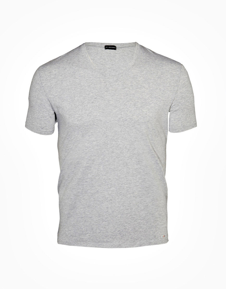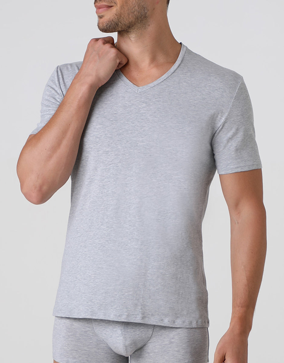 T-Shirt Cotton Stretch grigio melange in cotone elasticizzato con scollo a V profondo