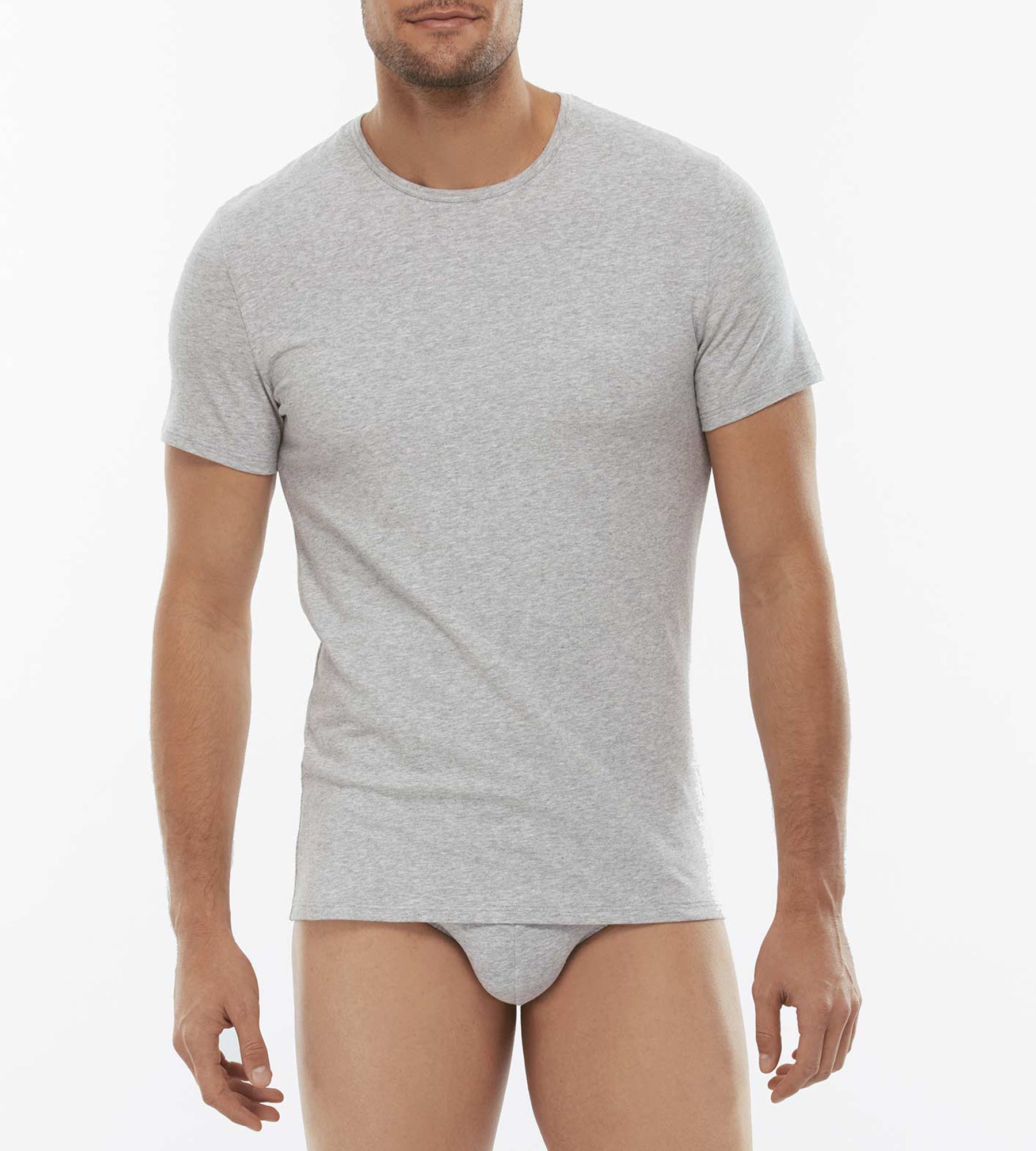 T-Shirt girocollo Cotton Stretch in cotone elasticizzato, grigio