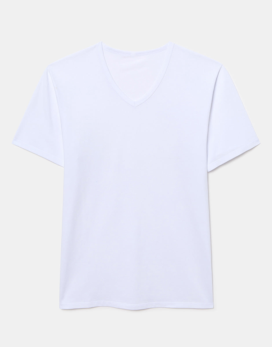 T-shirt scollo a V Cool Sensation in Stretch Cotton, bianco