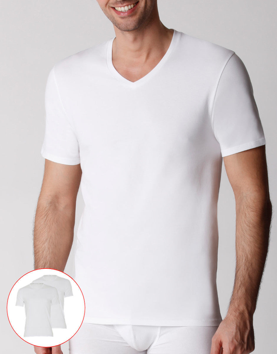 T-shirt scollo a V uomo in cotone biologico, confezione x2 bianco