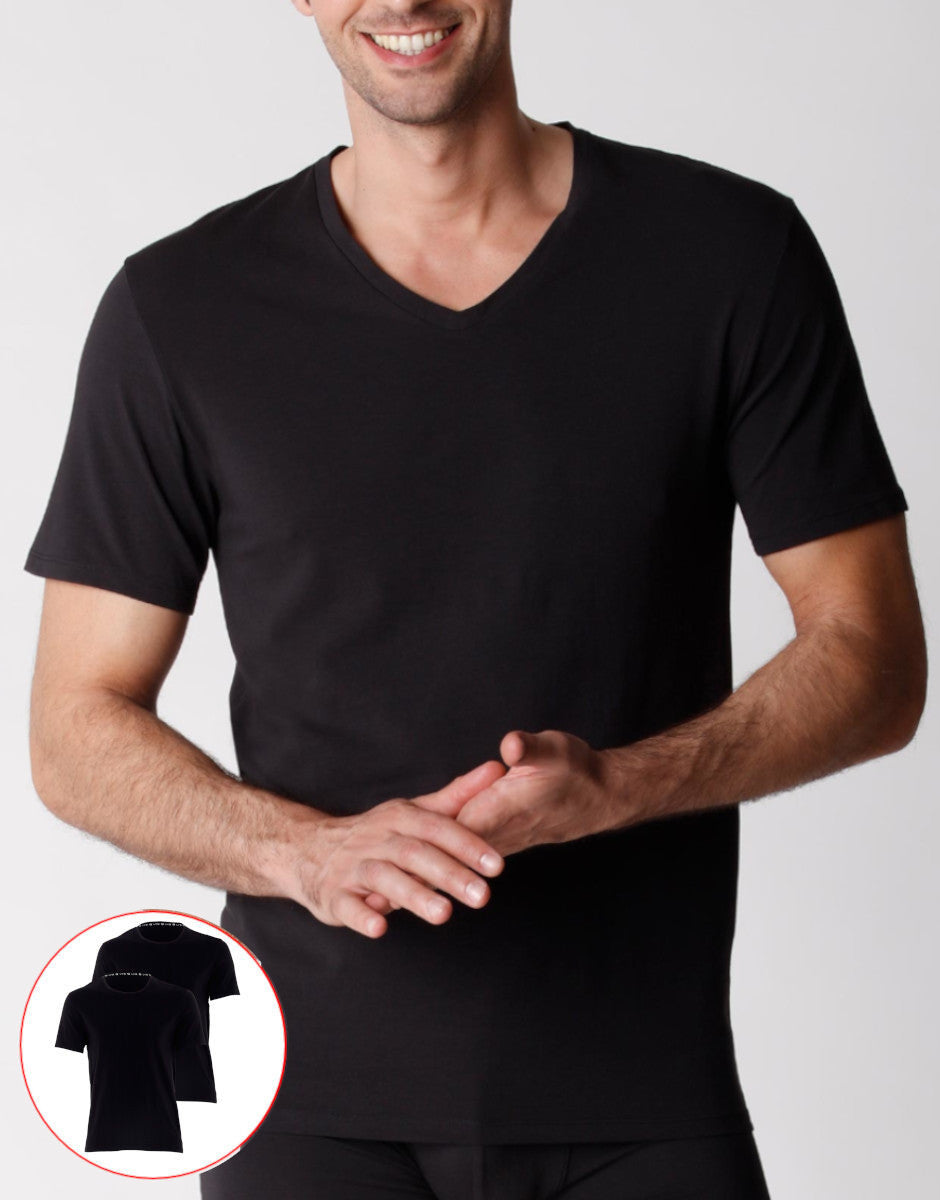 T-shirt scollo a V uomo in cotone biologico, confezione x2 nero