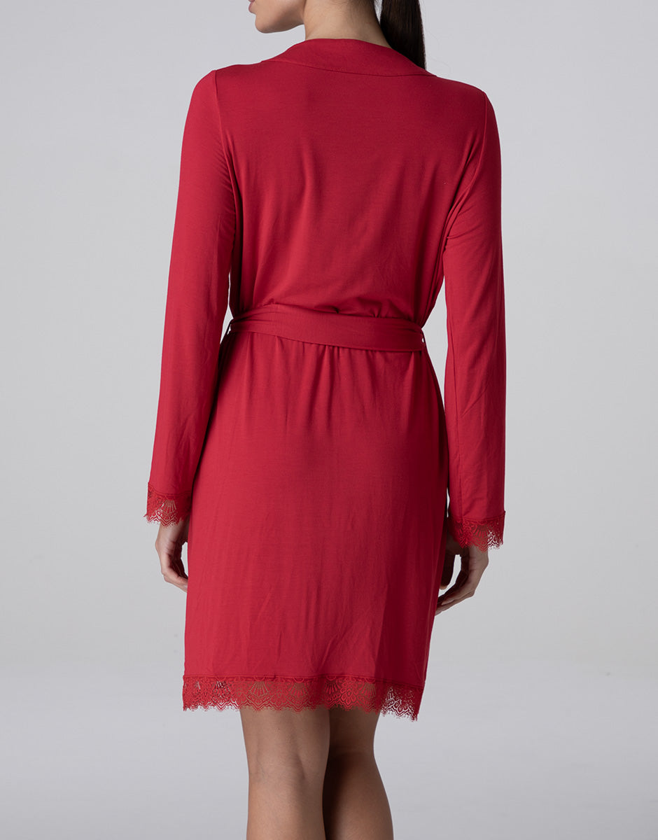 Scopri il relax raffinato con questa vestaglia da donna elegante e confortevole, realizzata in morbido Modal elasticizzato che avvolge il corpo con delicatezza. Il rosso intenso dona al capo un aspetto elegante e vivace, perfetto per i tuoi momenti di relax a casa.